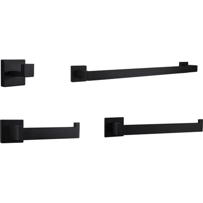 Lexora Bagno Lucido 4-Piece Bathroom Accessory Set - Matte Black LAS14152MB