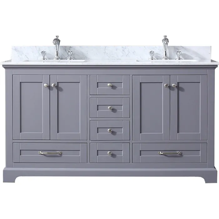 Lexora 60 inch Dark Grey Double Bathroom Vanity with White Carrara Marble Top with White Ceramic Square Undermount Sinks and no Mirror LD342260DBDS000