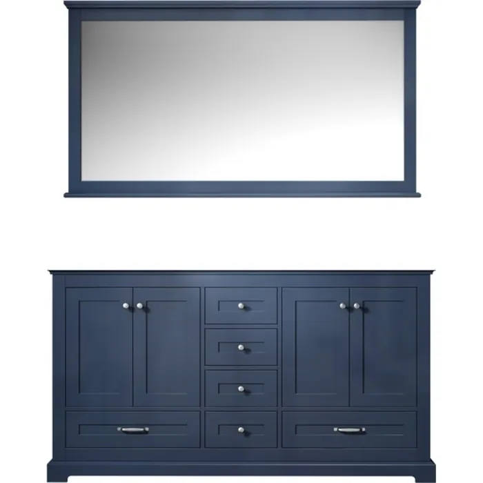 Lexora 60 inch Navy Blue Double Bathroom Vanity with no Top and 58 inch Mirror LD342260DE00M58