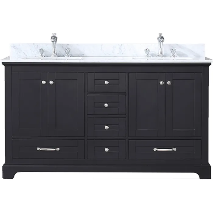 Lexora 60 inch Espresso Double Bathroom Vanity with White Carrara Marble Top with White Ceramic Square Undermount Sinks and no Mirror LD342260DGDS000