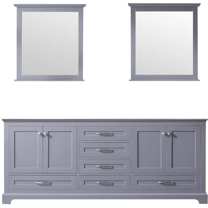 Lexora 80 inch Dark Grey Double Bathroom Vanity with no Top and 30 inch Mirrors LD342280DB00M30