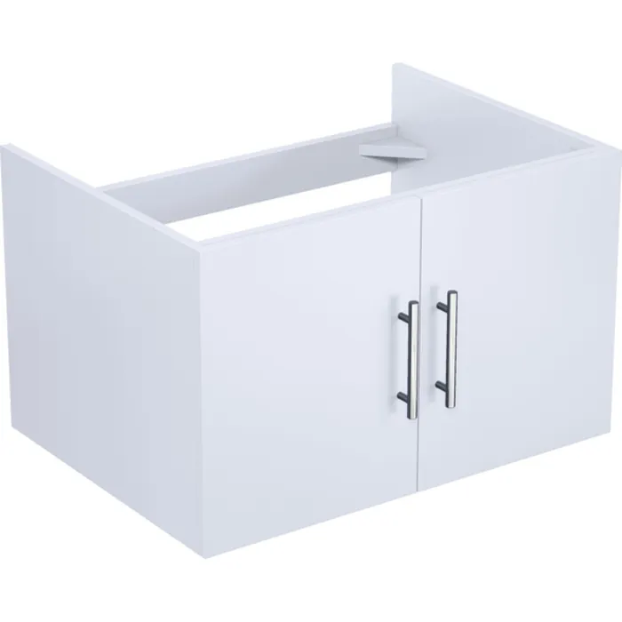 The wall-mounted Geneva vanity in white from Lexora is a beautiful blending of postmodern style and sensible functionality. Its simple, box-like design lends hints of classical style. When mounted on the wall, the Geneva vanity leaves ample space beneath for additional storage—ideal for bathrooms with limited space. Available in three colors, you can easily match this vanity to any bathroom décor. This piece is all you need to give your bathroom a total makeover.
