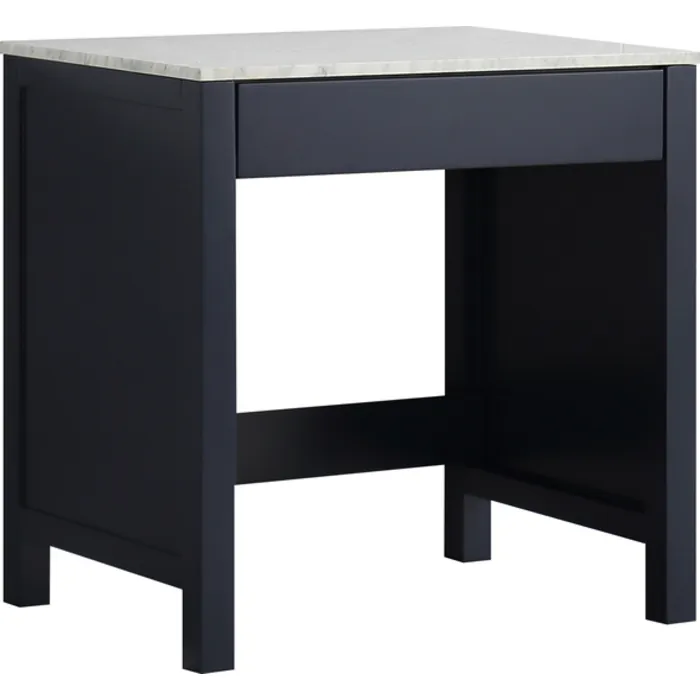 Lexora Jacques 30 inch Navy Blue Make-Up Table with White Carrara Marble Top LJ302230EDSMTB