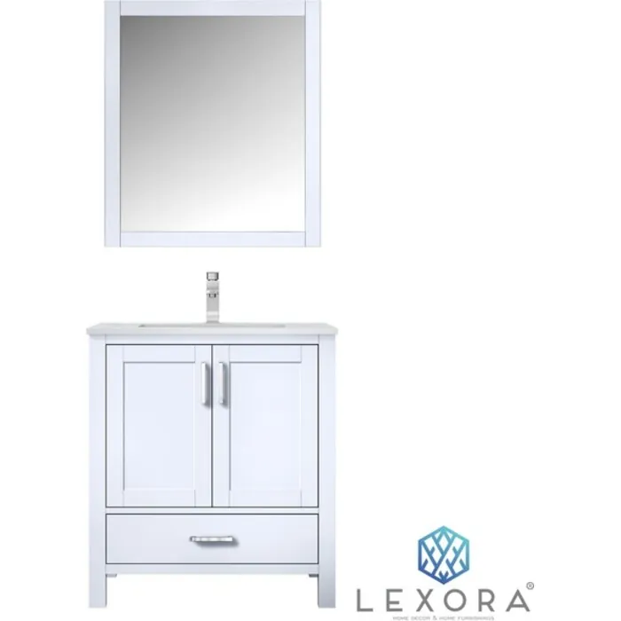 Lexora 30 inch White Single Bathroom Vanity Set with White Carrara Marble Top with White Ceramic Square Undermount Sink and 28 inch Mirror LJ342230SADSM28