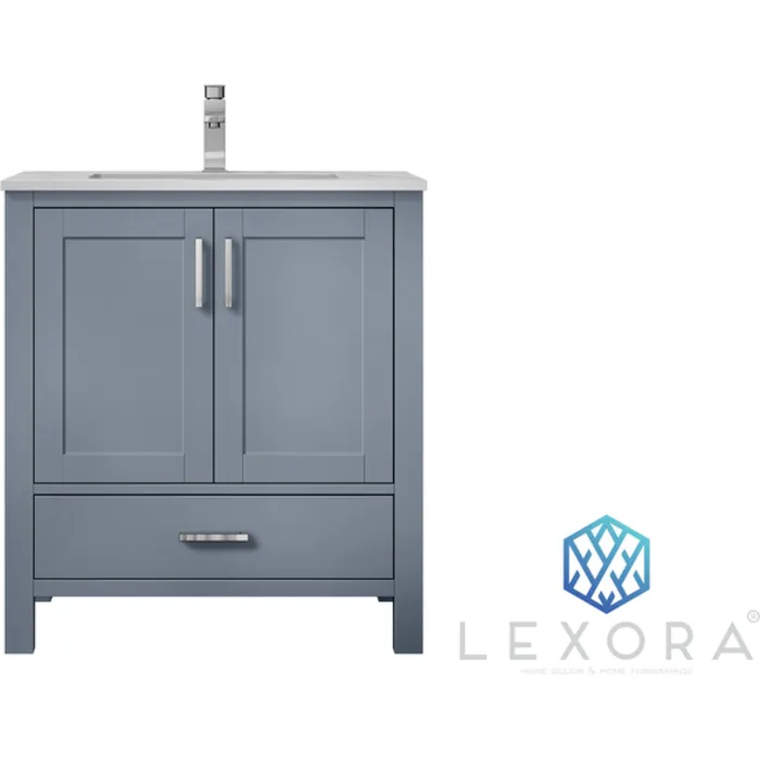 Lexora 30 inch Dark Grey Single Bathroom Vanity with White Carrara Marble Top with White Ceramic Square Undermount Sink and no Mirror LJ342230SBDS000