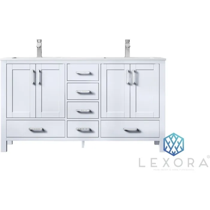 Lexora 60 inch White Double Bathroom Vanity with White Carrara Marble Top with White Ceramic Square Undermount Sinks and no Mirror LJ342260DADS000