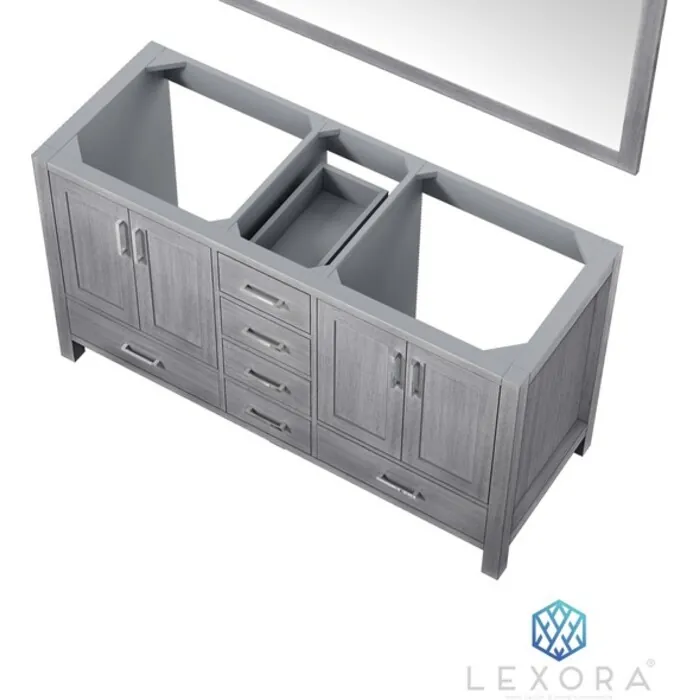 Lexora 60 inch Distressed Grey Double Bathroom Vanity with no Top and 58 inch Mirror LJ342260DD00M58