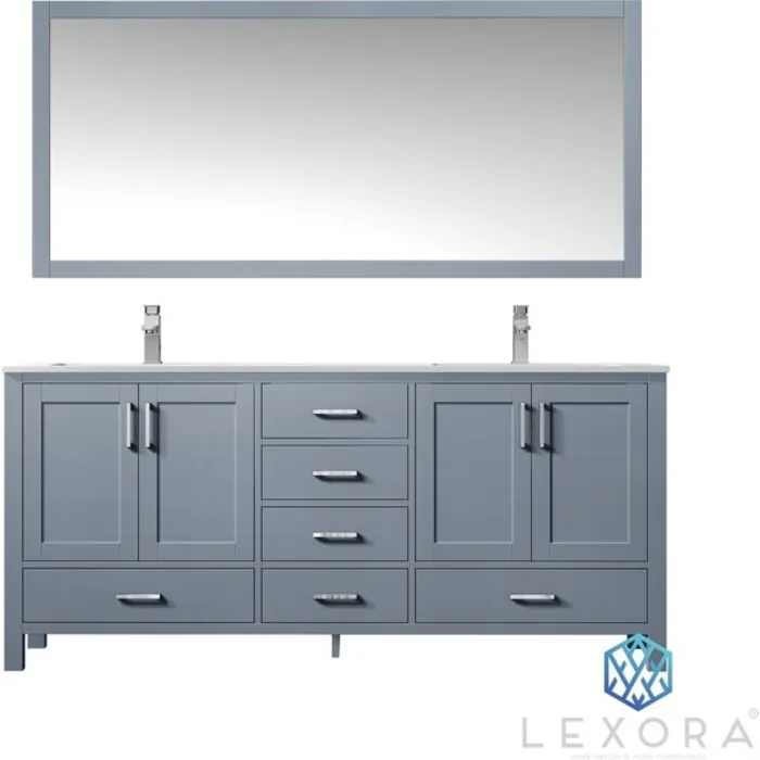 Lexora 72 inch Dark Grey Double Bathroom Vanity Set with White Carrara Marble Top with White Ceramic Square Undermount Sinks and 70 inch Mirror LJ342272DBDSM70