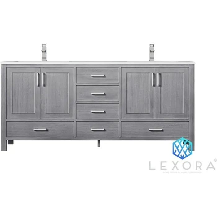 The Jacques vanity in distressed grey from Lexora provides a beautiful, contemporary style to any bathroom. With sleek, clean lines and a cool, neutral finish, this vanity’s beauty is only matched by its seamless functionality. The cabinet doors and drawers feature soft-close hinges and slides to increase safety and ensure you never have to hear a slamming cabinet again. With solid birch and rubber wood construction, this piece is as durable as it is stunning. The Jacques vanity comes in different sizes and finishes to fit into any size bathroom and blends with any style. It also includes a matching countertop and ceramic undermount sink, making it the one package you need to finish off your bathroom upgrade.