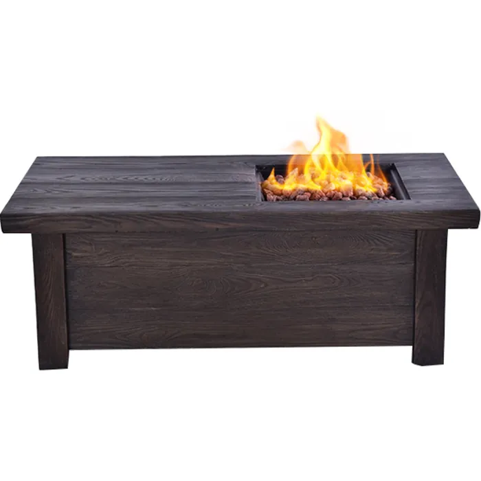 Lexora Melardo Outdoor Rectangular Wood Textured Gas Fire Pit table with Round Steel Burner Kit, Electronic Ignition and Auto Safety Shut-Off LM120047TB00000