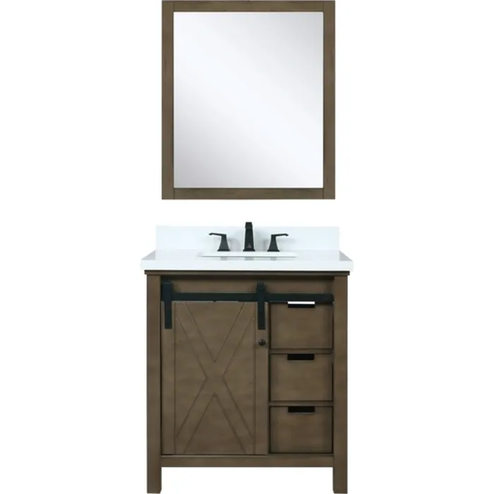 Lexora 30 inch Rustic Brown Single Bathroom Vanity Set with White Quartz Top with White Ceramic Square Undermount Sink and 28 inch Mirror LM342230SKCSM28