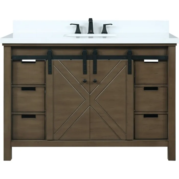 Lexora 48 inch Rustic Brown Single Bathroom Vanity with White Quartz Top with White Ceramic Square Undermount Sink and no Mirror LM342248SKCS000