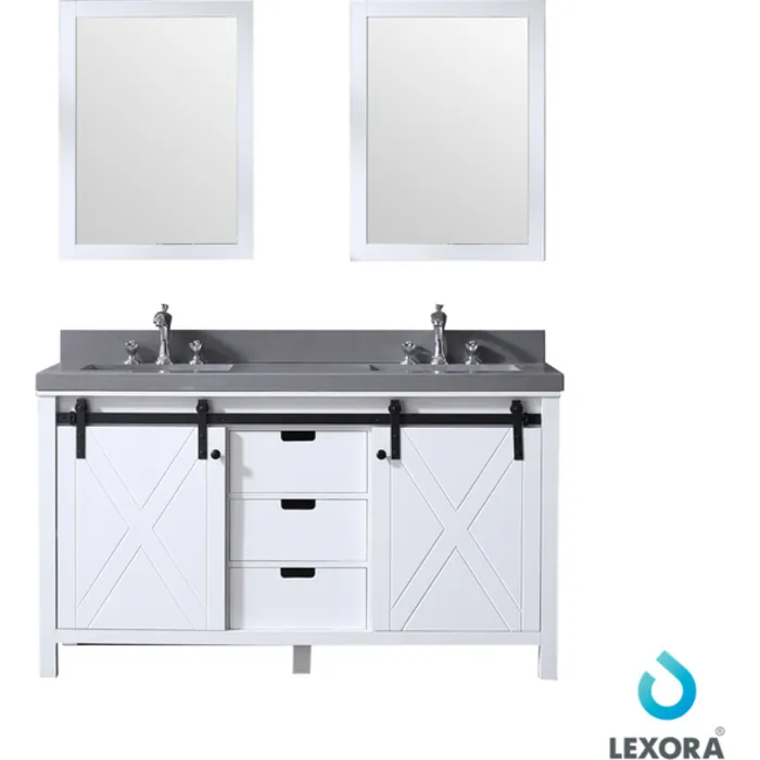 Lexora 60 inch White Double Bathroom Vanity Set in White with Grey Quartz Top with White Ceramic Square Undermount Sinks and 24 inch Mirrors LM342260DAASM24