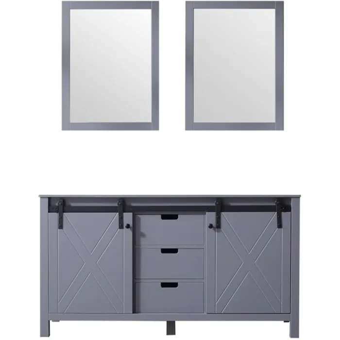 The Marsyas vanity in dark grey features a unique blending of modern style with rustic design elements to create a piece that makes a beautiful addition to any bathroom. The sliding, barn-style cabinet doors give this vanity a truly unique touch. Constructed of solid birch and rubber wood, with superior moisture resistance, this piece’s style is only matched by its dependability. With included mirrors with matching wood frame, the Marsyas vanity is the perfect set for finishing off your bathroom remodel.