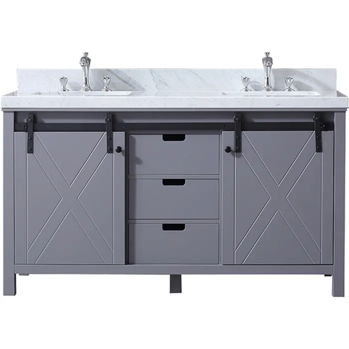 Lexora 60 inch Dark Grey Double Bathroom Vanity with White Carrara Marble Top with White Ceramic Square Undermount Sinks and no Mirror LM342260DBBS000
