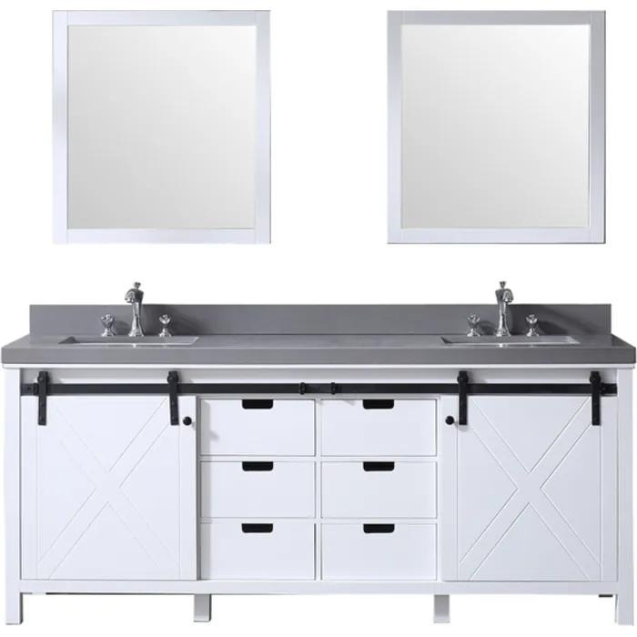 Lexora 80 inch White Double Bathroom Vanity Set with Grey Quartz Top with White Ceramic Square Undermount Sinks and 30 inch Mirrors LM342280DAASM30