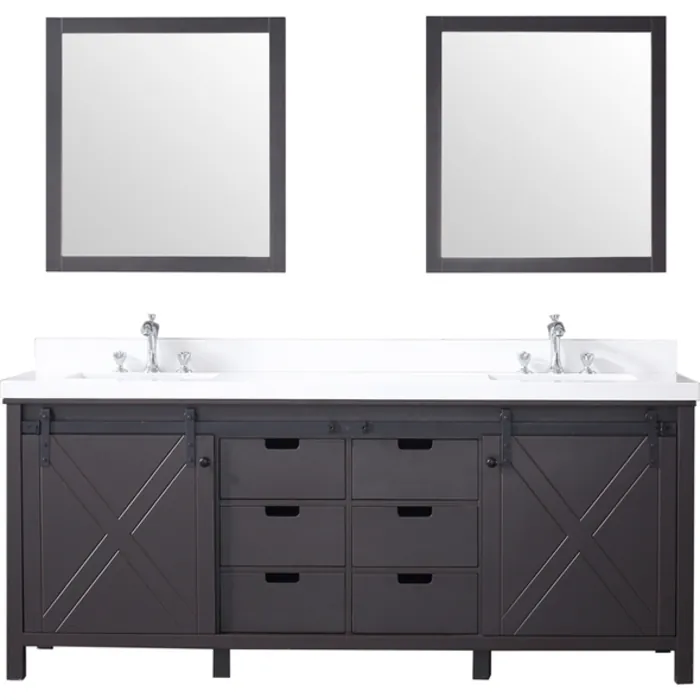 Lexora 80 inch Brown Double Bathroom Vanity Set with White Quartz Top with White Ceramic Square Undermount Sinks and 30 inch Mirrors LM342280DCCSM30