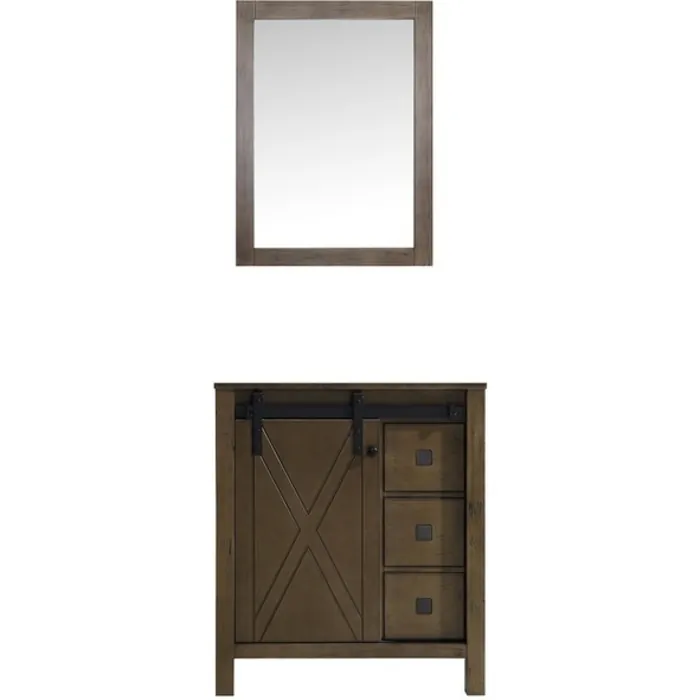 Lexora 30 inch Rustic Brown Single Bathroom Vanity with no Top and 28 inch Mirror LM343330SK00M28