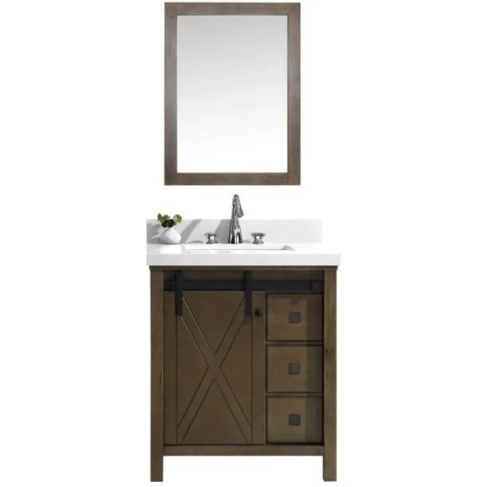 Lexora 30 inch Rustic Brown Single Bathroom Vanity Set with White Quartz Top with White Ceramic Square Undermount Sink and 28 inch Mirror LM343330SKCSM28