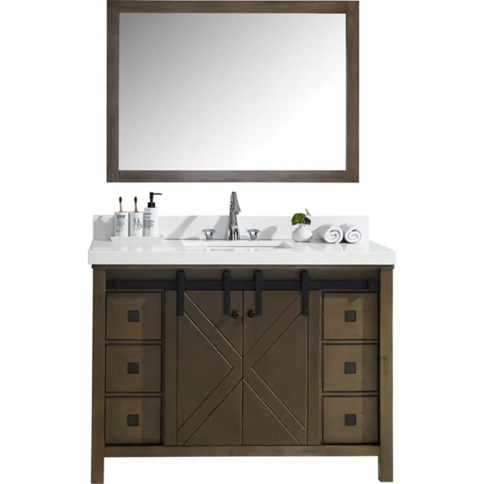 Lexora 48 inch Rustic Brown Single Bathroom Vanity Set with White Quartz Top with White Ceramic Square Undermount Sink and 44 inch Mirror LM343348SKCSM44