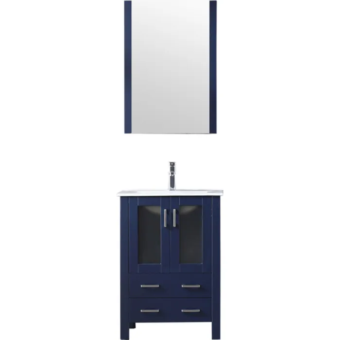 Lexora 24 inch Navy Blue Single Bathroom Vanity Set with Integrated Ceramic Top with White Ceramic Integrated Square Sink and 22 inch Mirror LV341824SEESM22