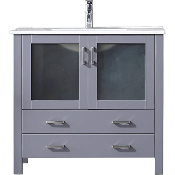 Lexora 36 inch Dark Grey Single Bathroom Vanity Set with Integrated Ceramic Top with White Ceramic Integrated Square Sink and no Mirror LV341836SBES000