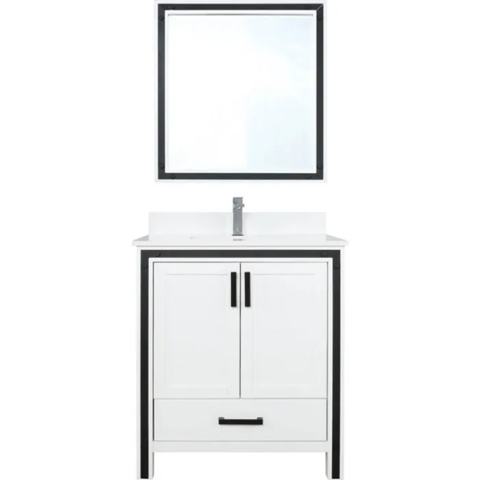 Lexora 30 inch White Single Bathroom Vanity Set with Cultured Marble Top with White Ceramic Square Undermount Sink and 28 inch Mirror LZV352230SAJSM28