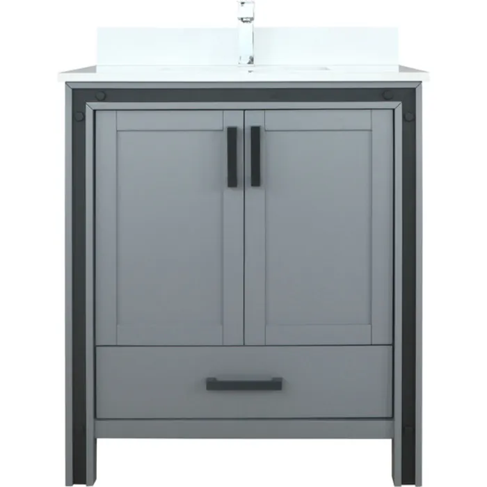 Lexora 30 inch Dark Grey Single Bathroom Vanity with Cultured Marble Top with White Ceramic Square Undermount Sink and no Mirror LZV352230SBJS000