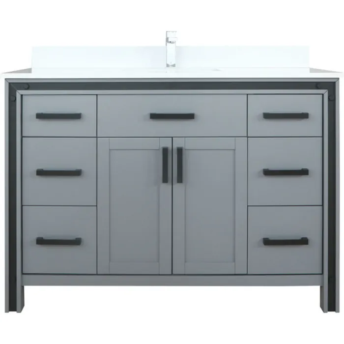 Lexora 48 inch Dark Grey Single Bathroom Vanity with Cultured Marble Top with White Ceramic Square Undermount Sink and no Mirror LZV352248SBJS000
