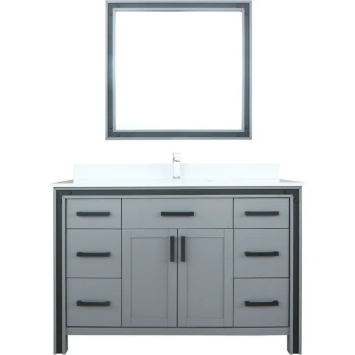 Lexora 48 inch Dark Grey Single Bathroom Vanity Set with Cultured Marble Top with White Ceramic Square Undermount Sink and 34 inch Mirror LZV352248SBJSM34