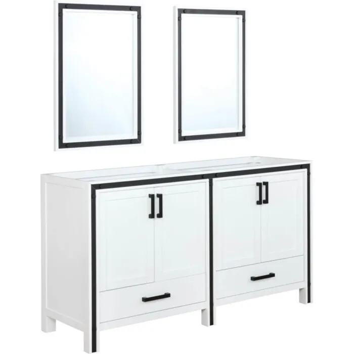 Lexora 60 inch White Double Bathroom Vanity with no Top and 22 inch Mirrors LZV352260SA00M22