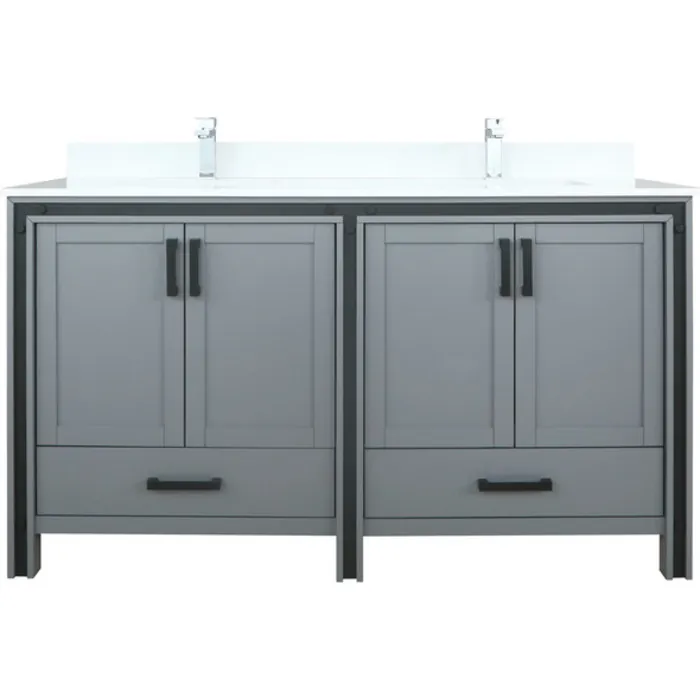 Lexora 60 inch Dark Grey Double Bathroom Vanity with Cultured Marble Top with White Ceramic Square Undermount Sink and no Mirror LZV352260SBJS000