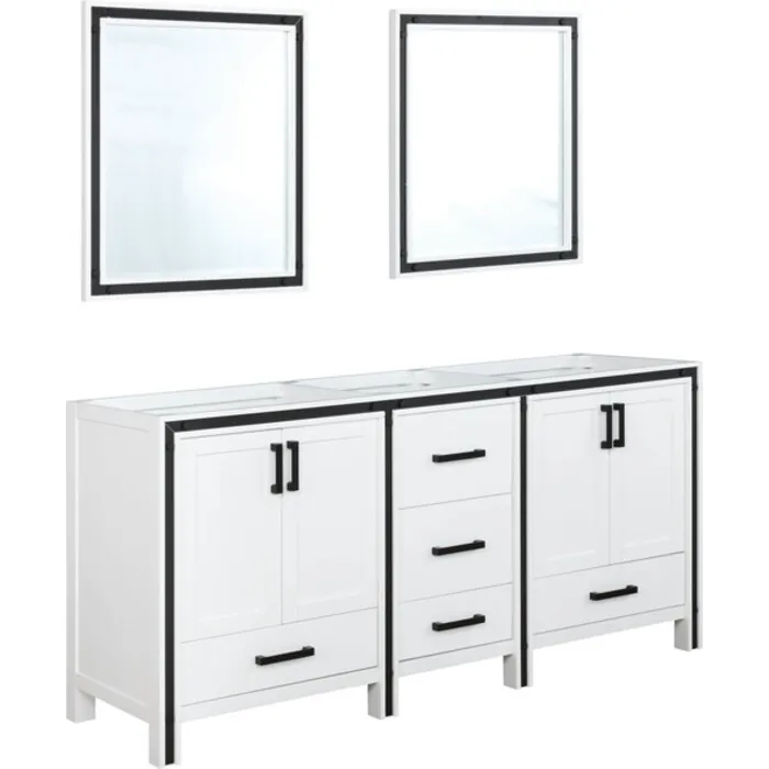 Lexora 72 inch White Double Bathroom Vanity with no Top and 30 inch Mirrors LZV352272SA00M30