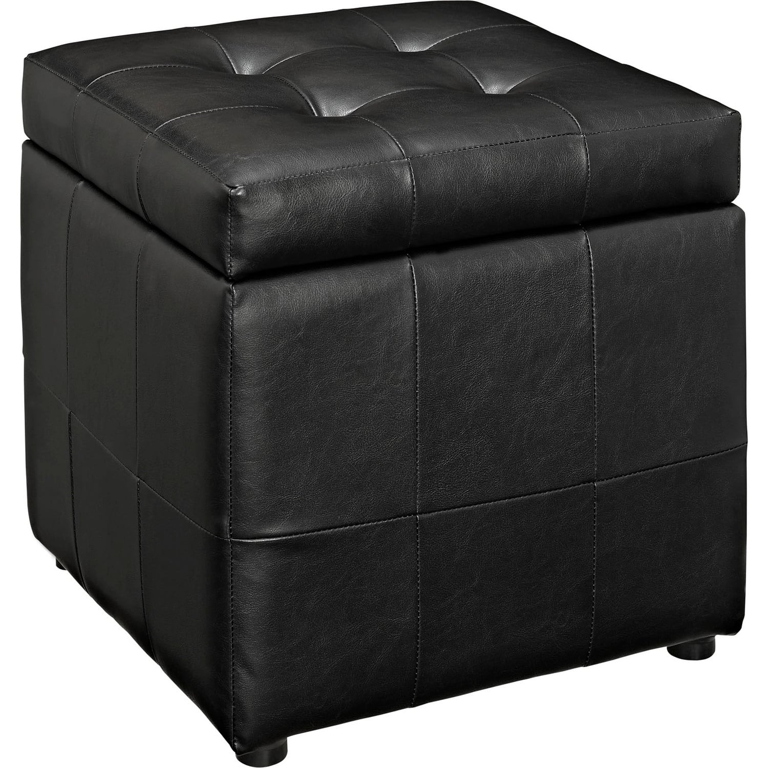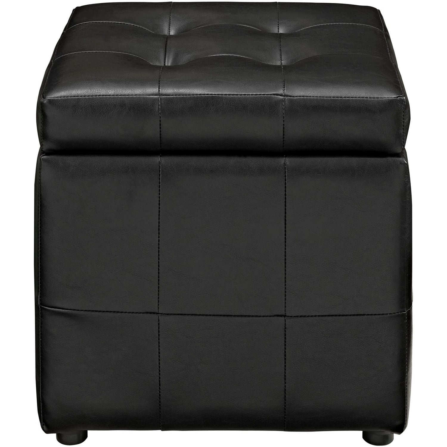 The square shape evokes feelings of security and reliance in this compact accent ottoman you can count on. The Volt Button Tufted Faux Leather Upholstered Storage Ottoman stands ready as a footrest, while the lined storage compartment works great for both regular uses, and for a swift run-through before last-minute visitors. Dense foam padding and a solidly constructed wood frame are covered by soft and durable faux leather upholstery, while button tufting details give Volt a contrasting visual depth designed to please. Volt Faux Leather Upholstered Storage Ottoman features a boxy design that creates a dashing addition to your agile décor, making it perfect for your living room, lounge room, bedroom, or other seating areas.Padded Faux Leather Lining