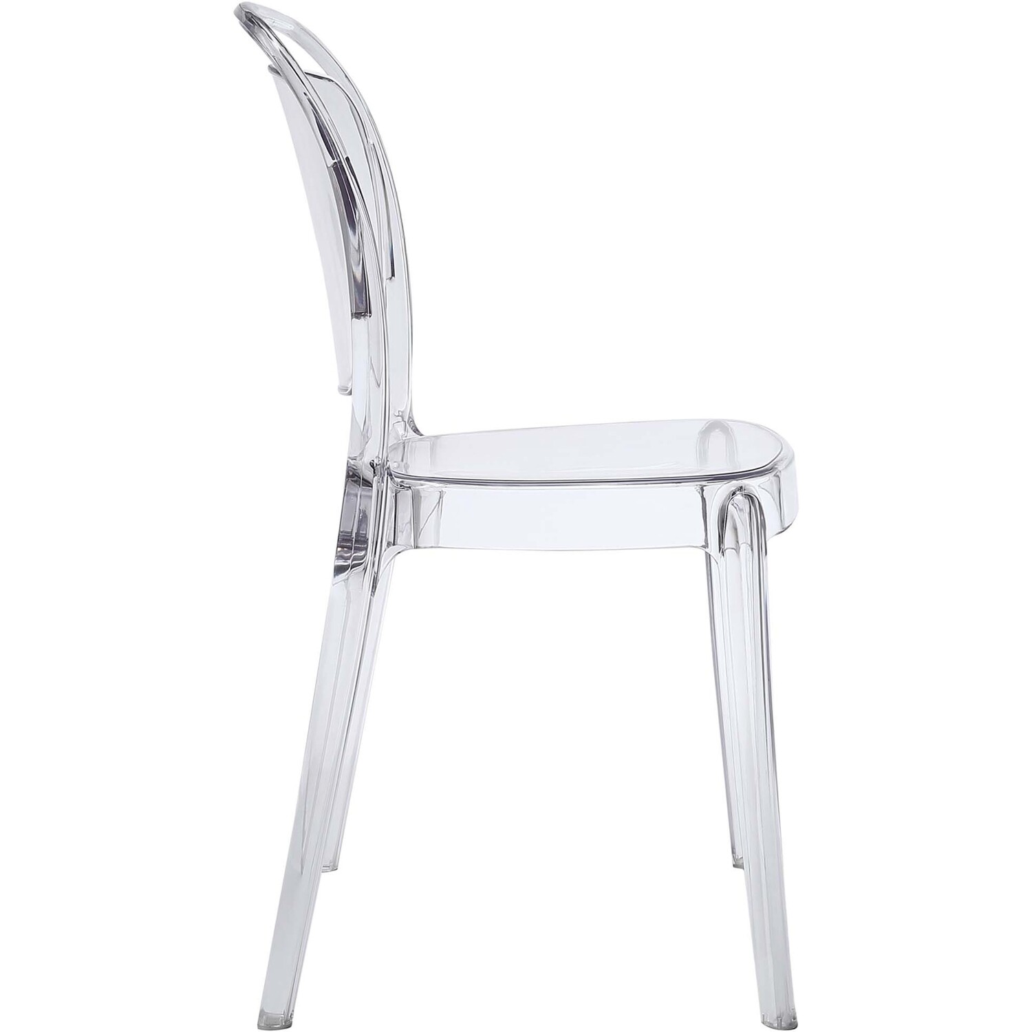 A sprawling minimalist design makes the Entreat dining chair a uniquely elegant choice. Made of durable and strong polycarbonate plastic, Entreat is an uncomplicated piece intended to serve as the backdrop to your life activities. The silhouette back design casts an intriguing shadow on your surroundings, while fully enlightening your eating engagements with a simple light-filled décor.Modern dining chair