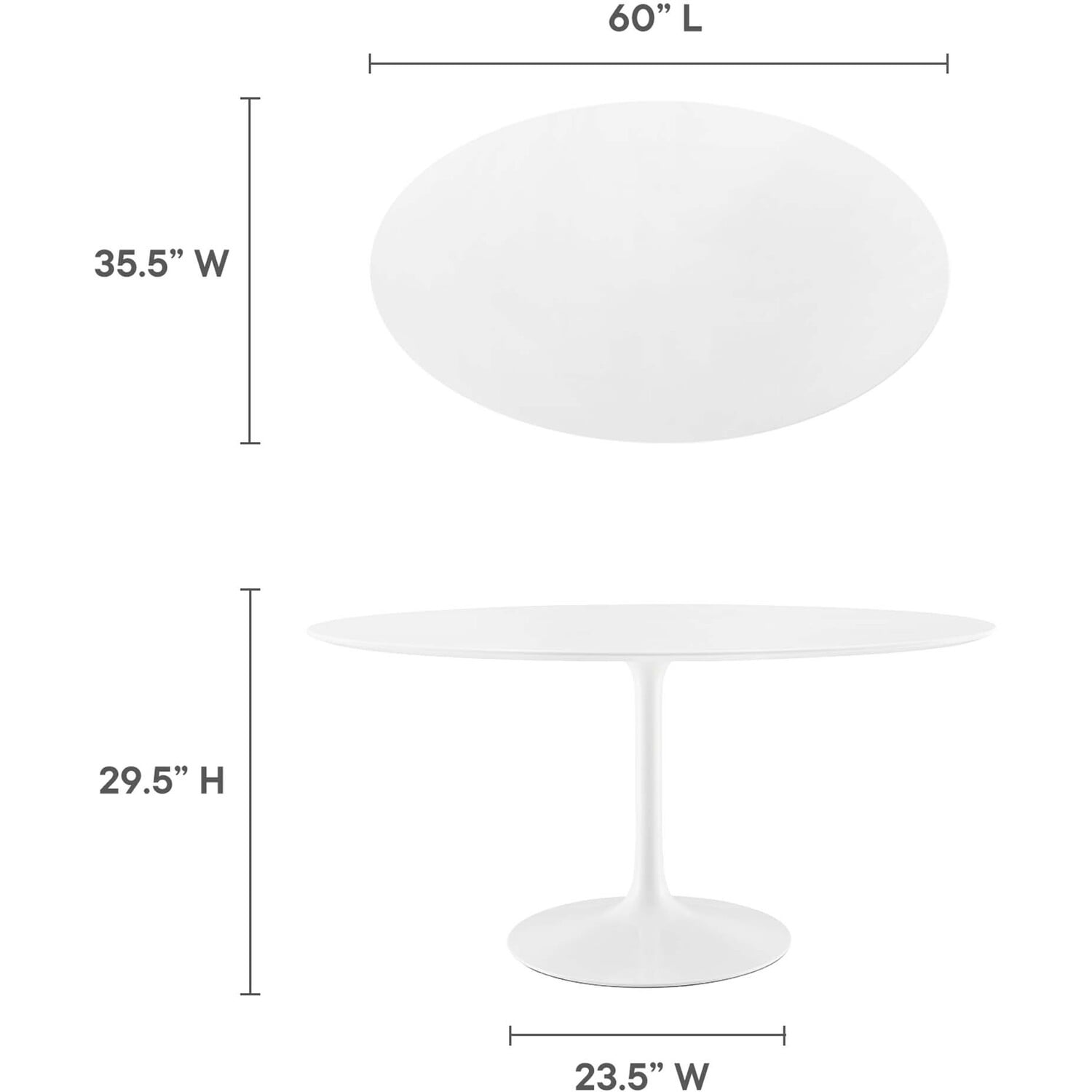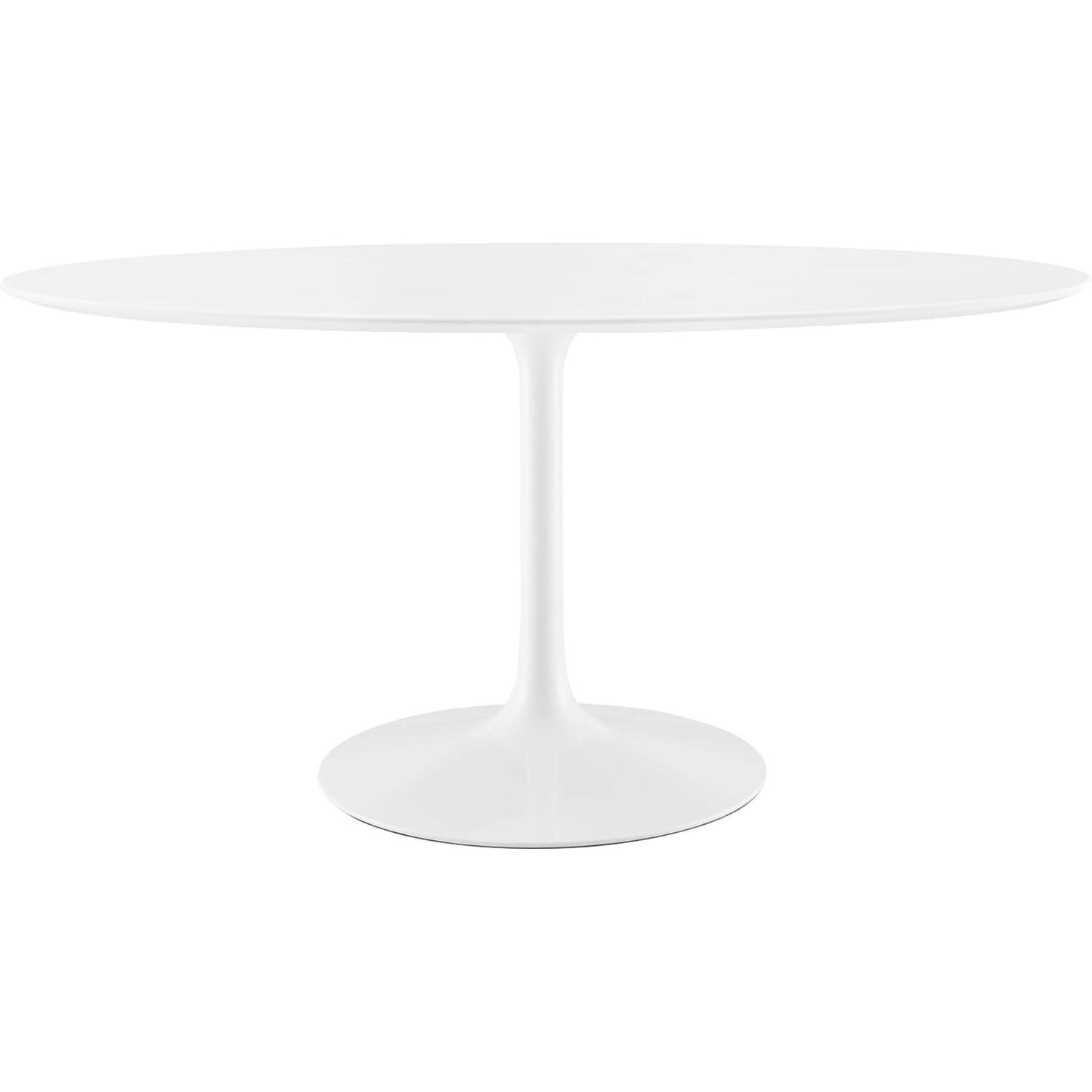 Let modern inspiration flow while gathered around the Lippa 60" Oval Dining Table. Perfect for entertaining family and friends or everyday dining, this pedestal table comfortably seats six. Its oval tabletop is crafted with MDF with a high gloss finish and beveled edge for a contemporary yet timeless design. Embodying an iconic mid-century silhouette, this pedestal dining table floats on a sleek tapered metal pedestal base with a chip-resistant lacquered finish. Includes non-marking felt pad to protect flooring. Assembly required.Modern Dining Table