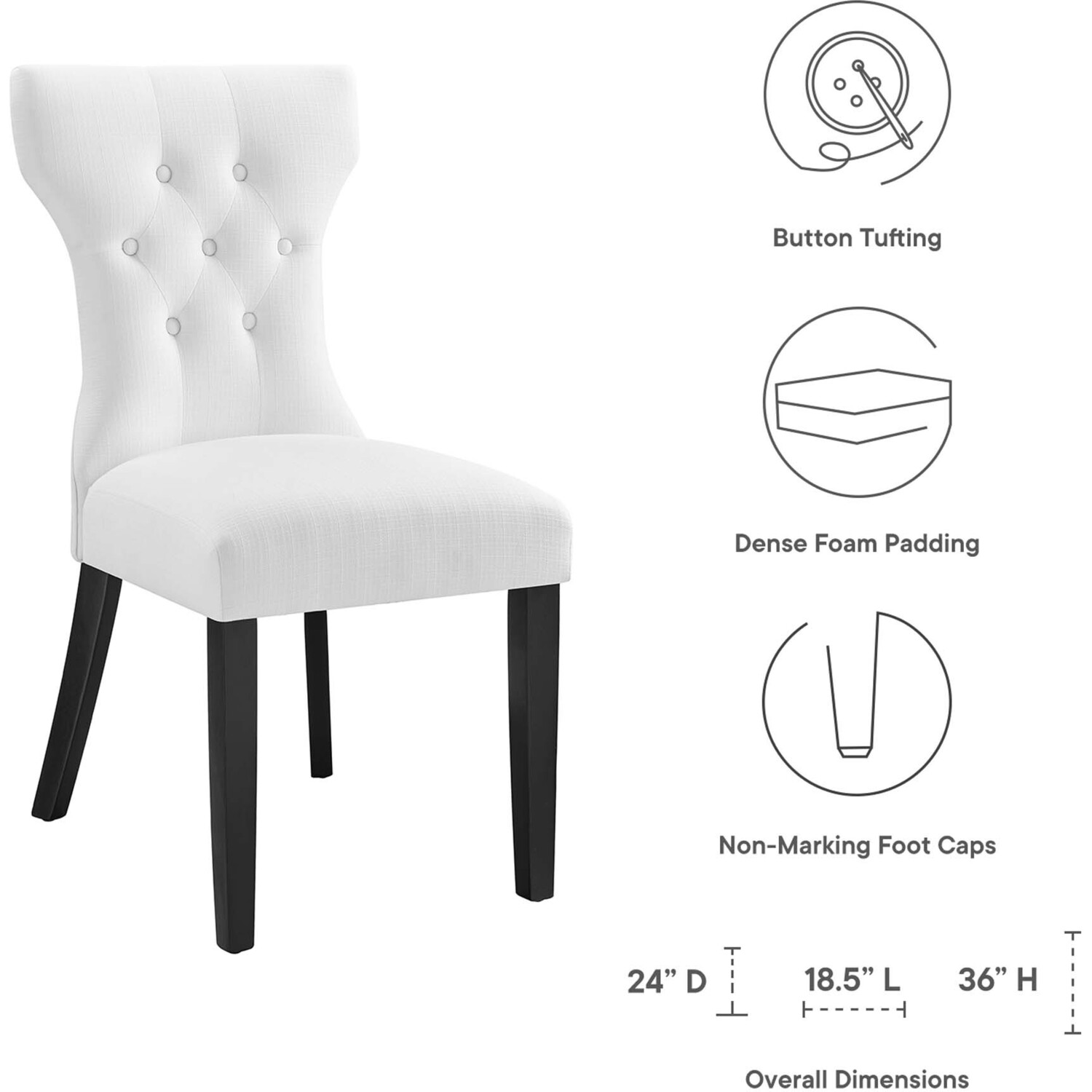 Graceful curves whisper elegance from every position. A softly tapered back and rounded hardwood legs lend distinguished support to this hourglass-shaped chair. Invite your way into the lap of luxury at every gathering.Simple Modern Dining Chair