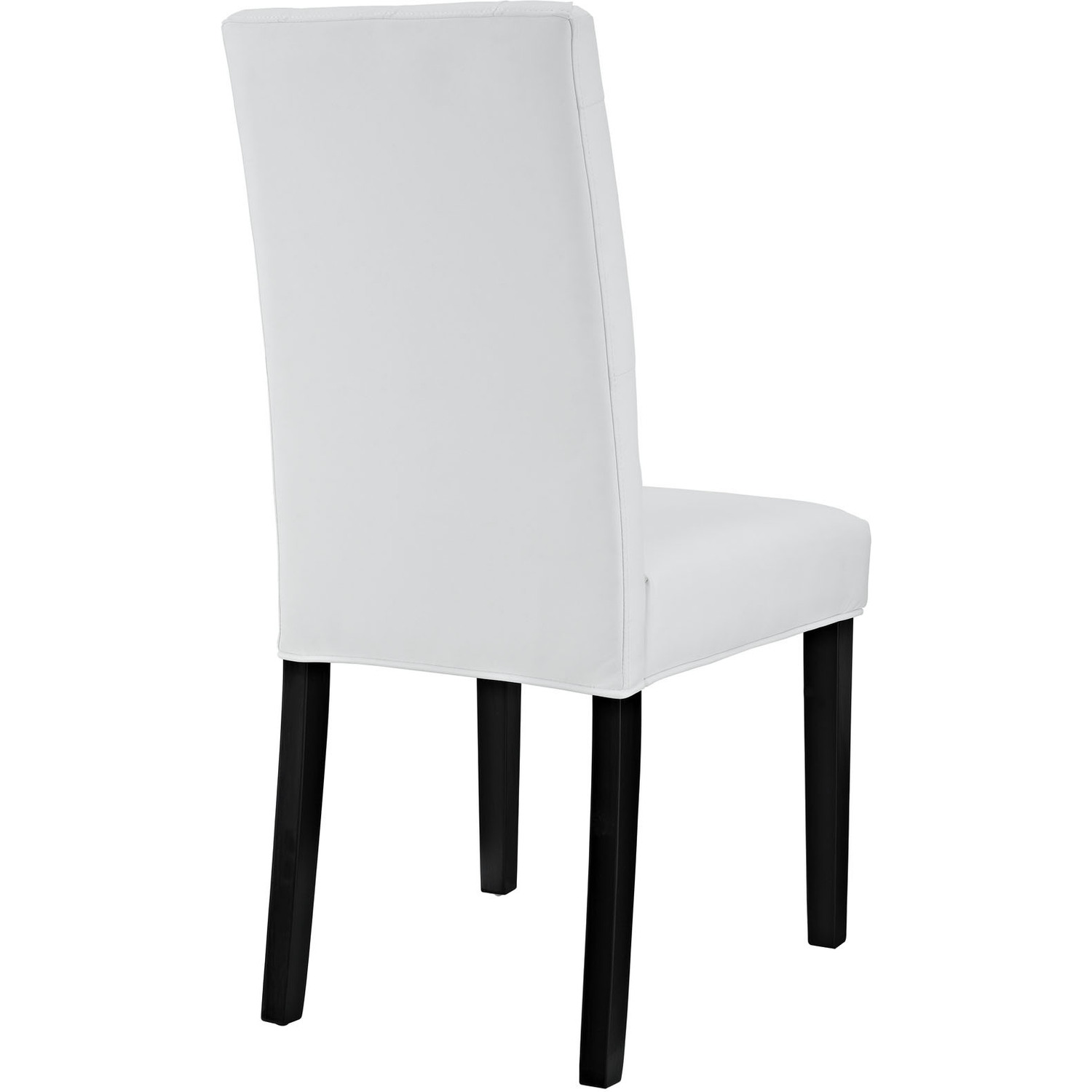 Endow your dining room with something delightful. The Confer modern dining chair combines dense foam with fine faux leather upholstery for a singular piece of elegance. Fashioned with eight tufted buttons and supported by stained hardwood legs, Confer is a richly designed piece that blankets your dining experience in a layer of magnificence.Modern dining chair