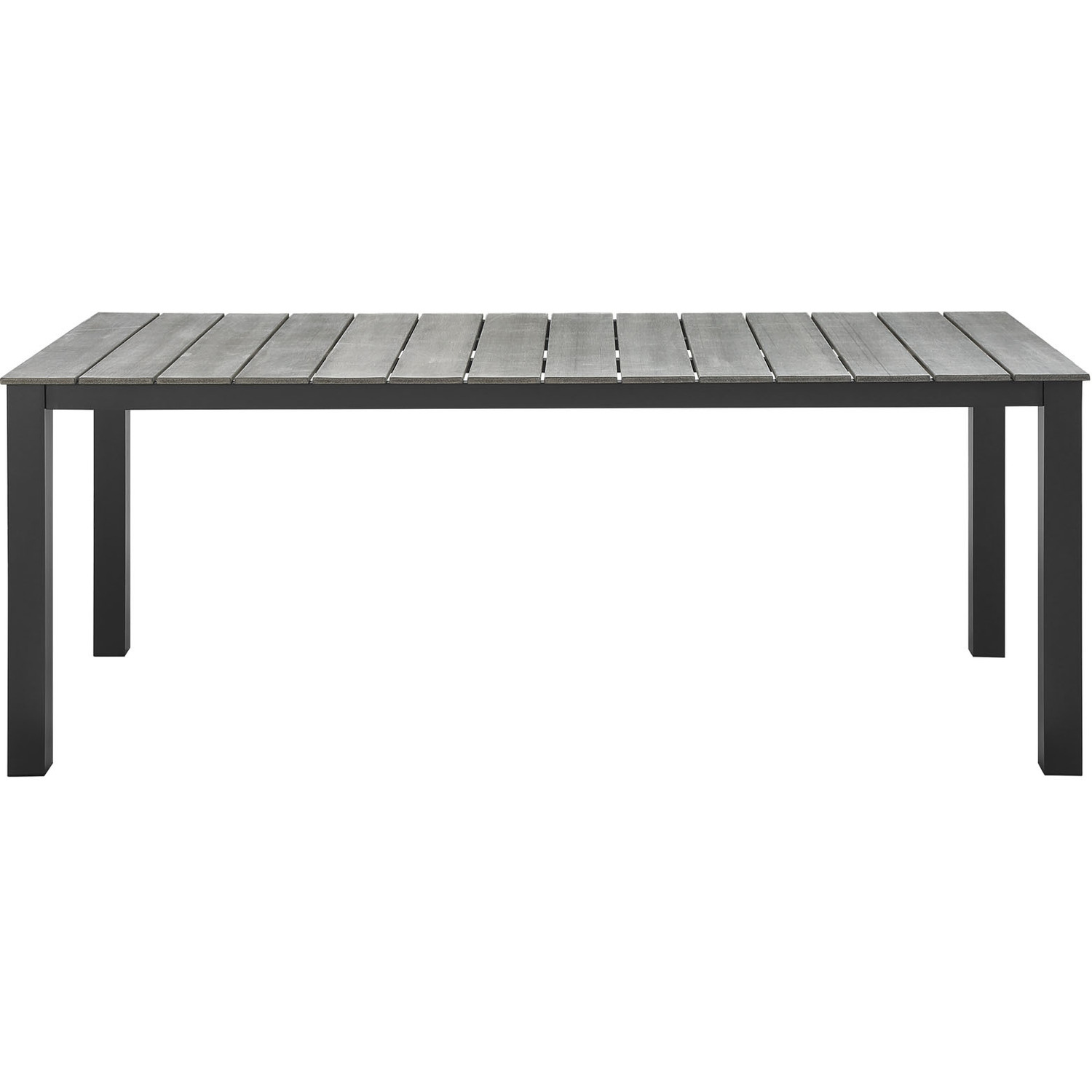 Bordered by the Atlantic Ocean rests the Maine Outdoor Collection. Distinguished by its synthetic wood grain plank boards, powder-coated aluminum frame, inspired design, and rich organic feel, Maine stands out as a versatile series for outdoor dining. This contemporary modern 80" dining table is perfect for contemporary patios, backyards, poolside, and other outdoor lounge areas.Modern Outdoor Dining Table