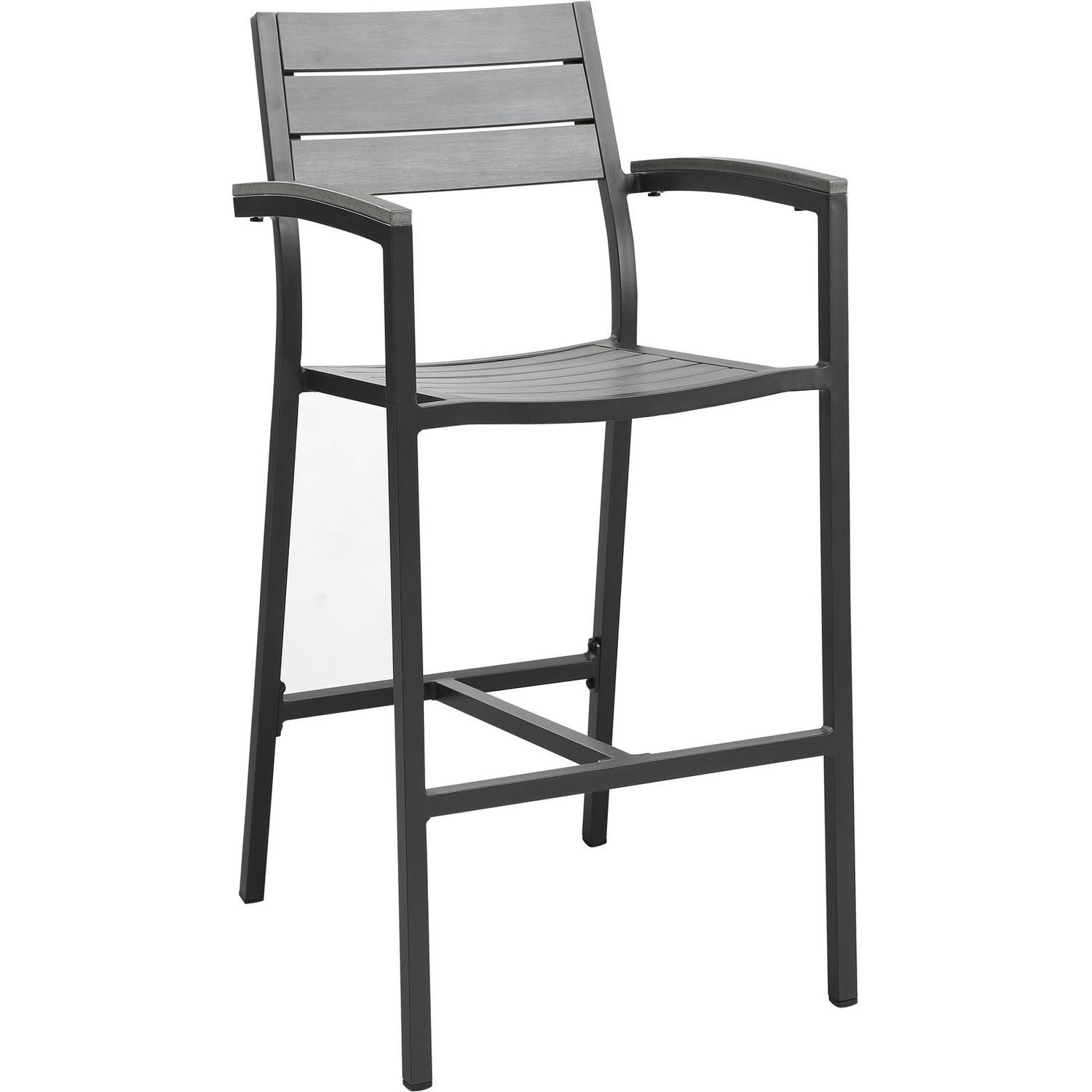 Bordered by the Atlantic Ocean rests the Maine Outdoor Patio Dining Bar Stool. Distinguished by its synthetic wood grain plank boards, powder-coated aluminum frame, inspired design, and rich organic feel, Maine Patio Dining Bar Stool stands out as a versatile piece for outdoor dining. This contemporary modern outdoor bar stool is perfect for contemporary patios, backyards, poolside, and other outdoor lounge areas.Modern Outdoor Bar Stool
