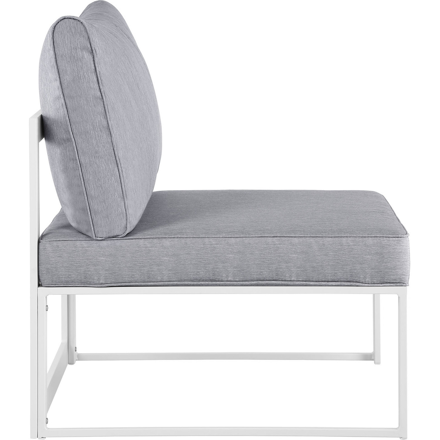 Nestled within close proximity to forests, rivers, valleys, and the Pacific Ocean rests the Fortuna Outdoor Patio Collection. Enjoy the good life with the versatile Fortuna Patio Armless Chair in an engaging arrangement that makes it easy to enjoy conversations together with friends and family. Made of powder-coated aluminum with all-weather polyester cushions, Fortuna Outdoor Patio Chair appeals to the modern palate without overwhelming the senses. This installment of the Fortuna Outdoor Series is an armless outdoor sofa chair perfect for contemporary patios, backyards, poolside, and other outdoor lounge areas.Modern Outdoor Armless Chair