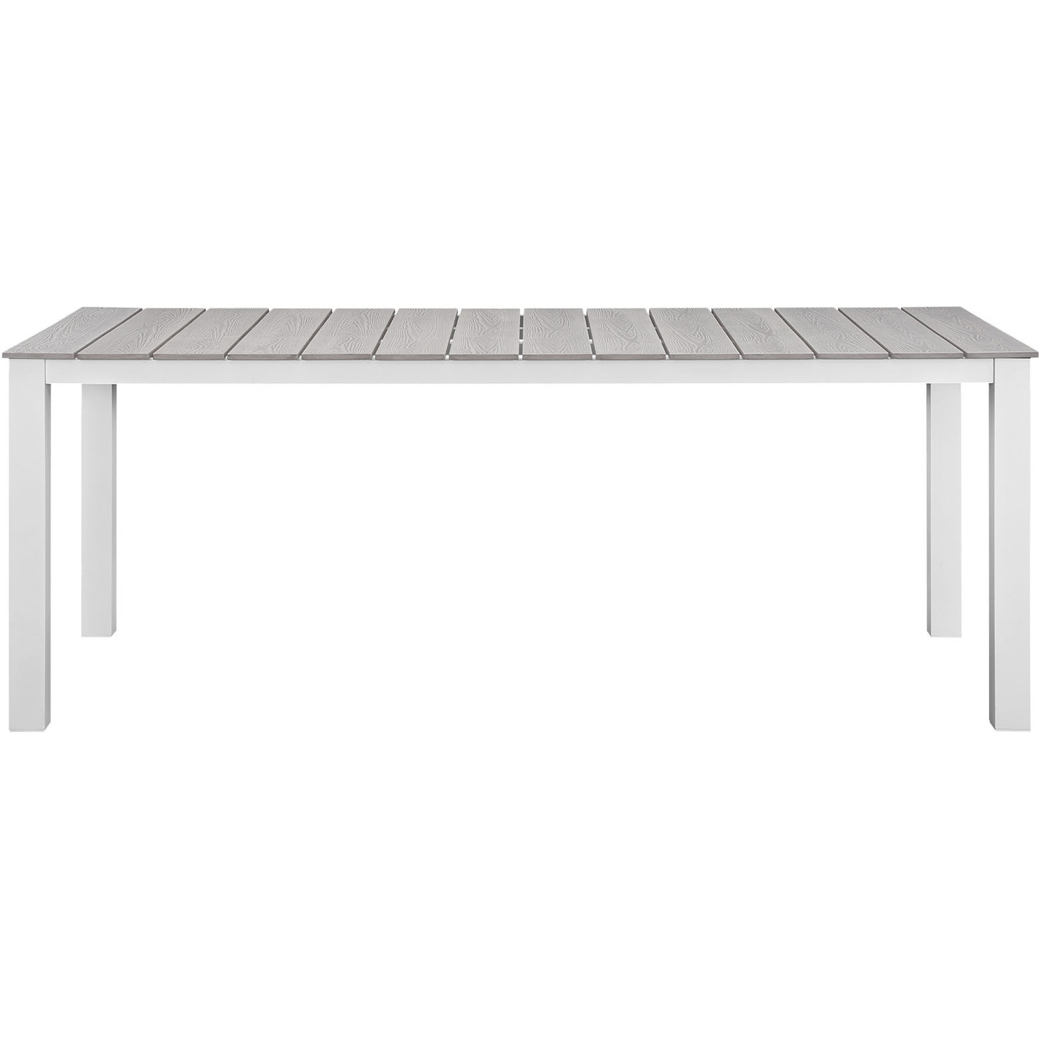 Bordered by the Atlantic Ocean rests the Maine Outdoor Patio Dining Furniture Collection. Distinguished by its synthetic wood grain plank boards, powder-coated aluminum frame, inspired design, and rich organic feel, Maine Outdoor Dining Set stands out as a versatile series for outdoor dining. This contemporary modern patio dining set is perfect for contemporary patios, backyards, poolside, and other outdoor lounge areas.Modern Outdoor Dining Set