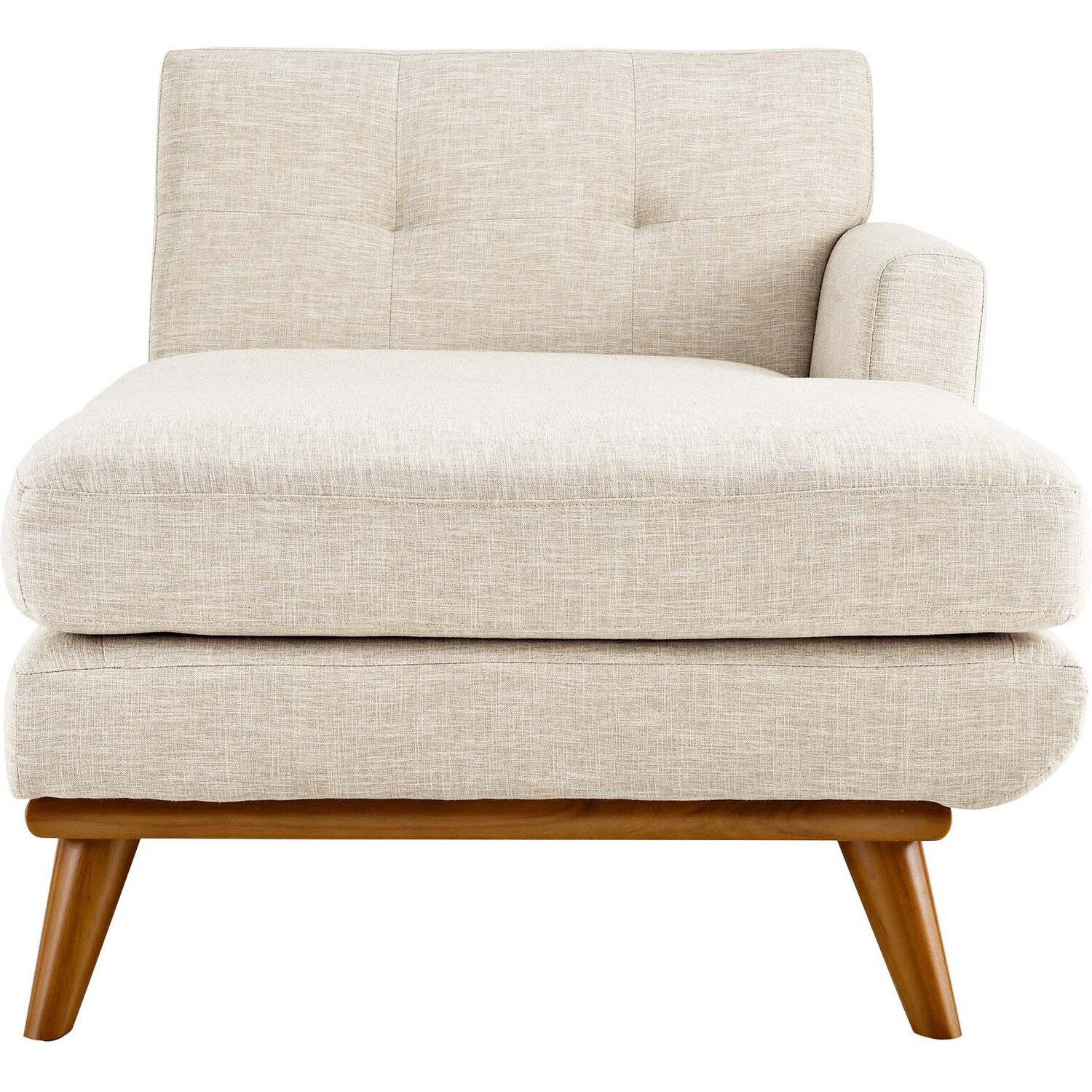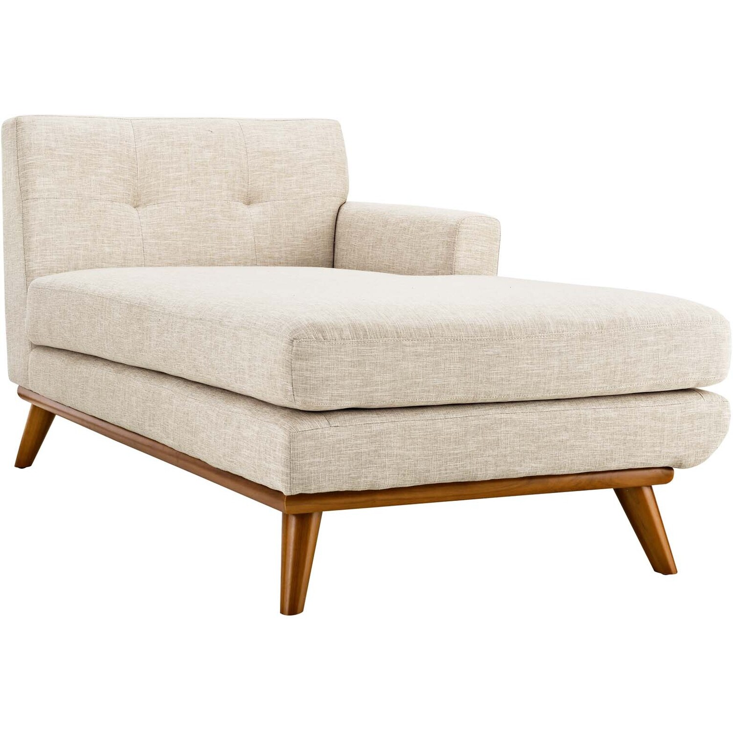 Gently sloping curves and plush chaise cushion create a favorite lounging spot. Whether relaxing after a long day at work, settling in with coffee and brunch, or entering a spirited discussion with friends, the Engage right-arm chaise is a welcome presence in your home. Two tufted buttons create eye-catching appeal, adding depth that brings your seating décor to center stage. Rubberwood legs and frame supply a solid base to this quality upholstered fabric piece.Right-Facing Chaise