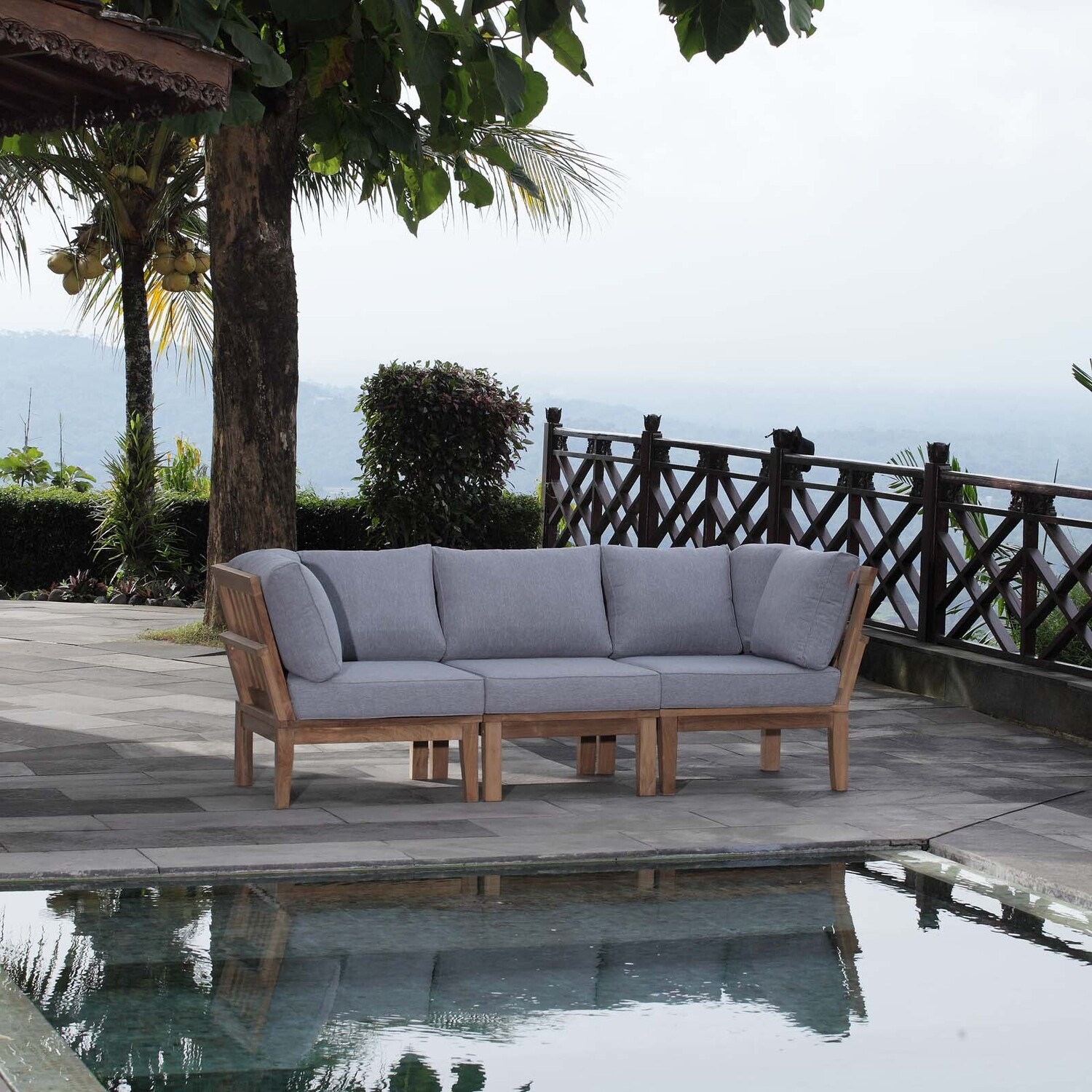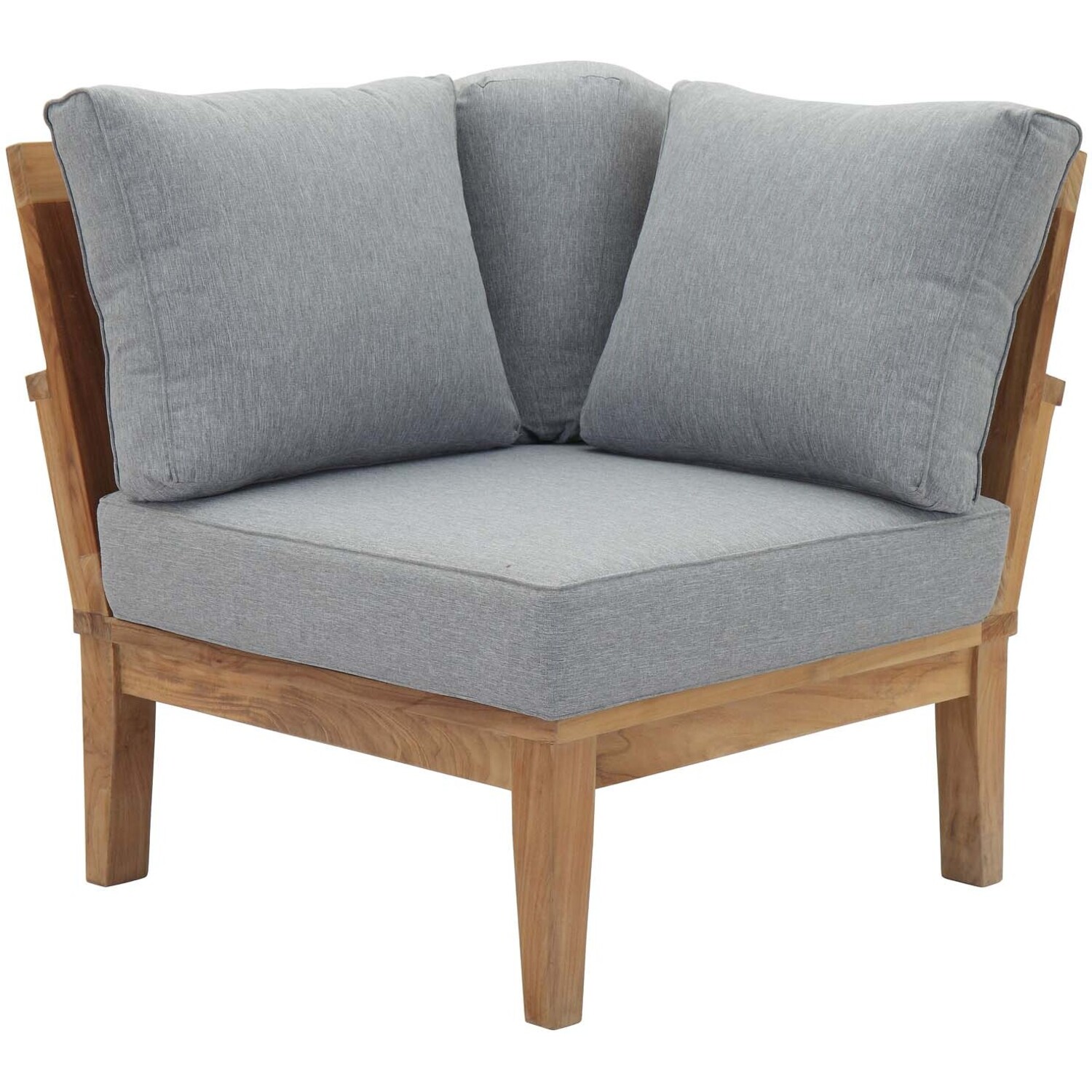 Harbor your greatest expectations with the luxurious Marina Teak Wood Outdoor Patio Furniture Sofa Sectional set. Marina Patio Furniture series has a seating arrangement perfect for every member of your crew as you breathe the fresh, crisp air of a day spent with friends and family. Known for its natural ability to withstand extreme weather conditions, teak is the wood selection of choice for long-lasting outdoor patio furniture. Now you can enjoy Marina Teak Wood Outdoor Sectional Sofa set with its durable construction and all-weather cushions, alongside a modern design that persistently looks new and welcoming in your patio seating environs. Assembly required.Solid teak wood construction