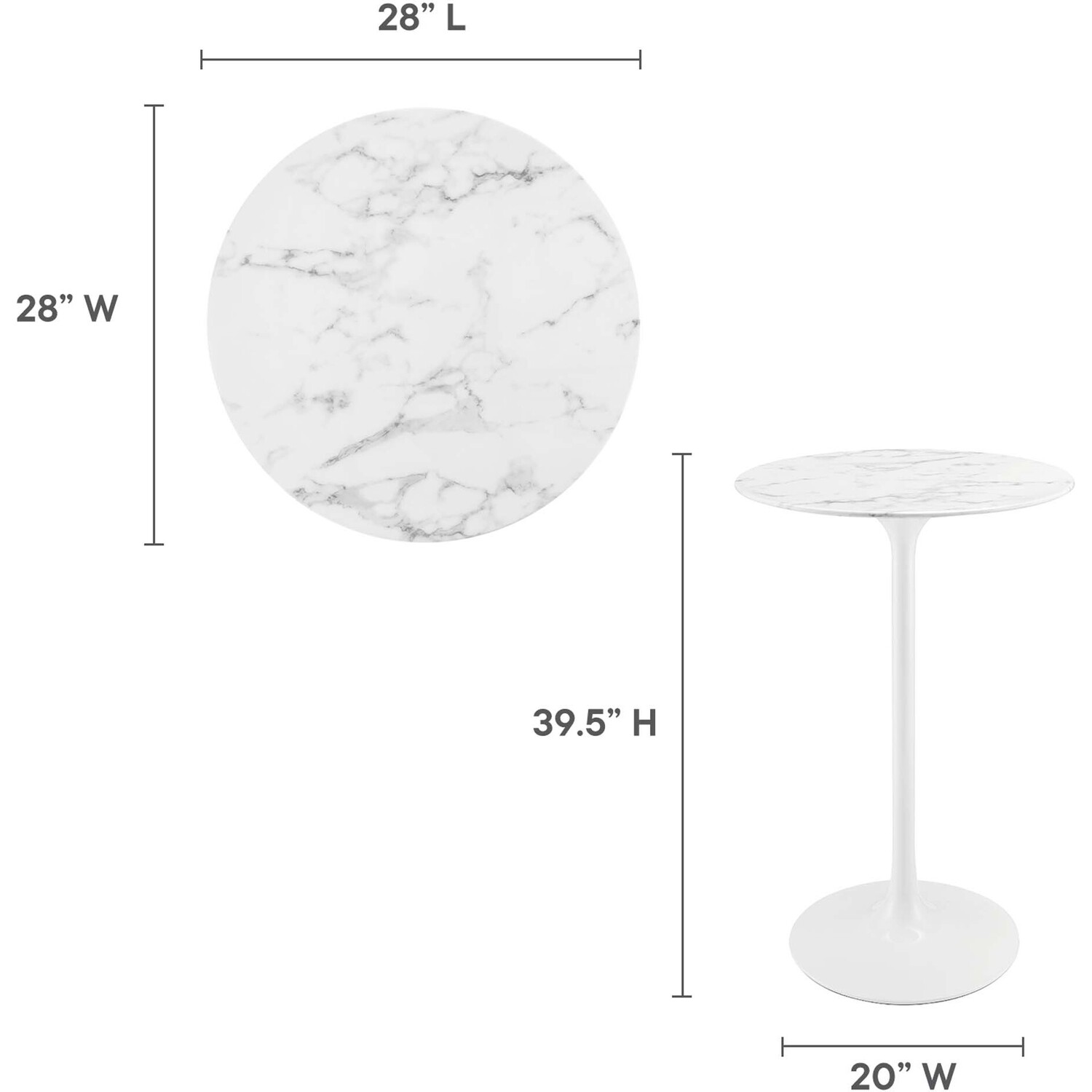 Modway Furniture Lippa 28 inch Round Faux Marble Bar Table by Modway, 889654023449, EEI-1827
