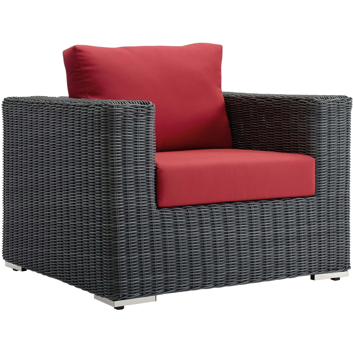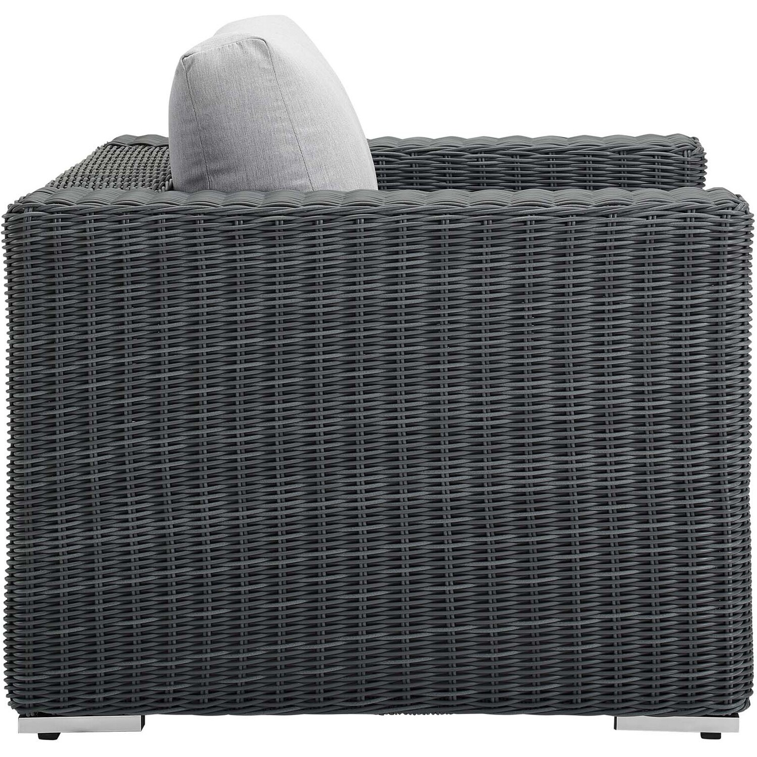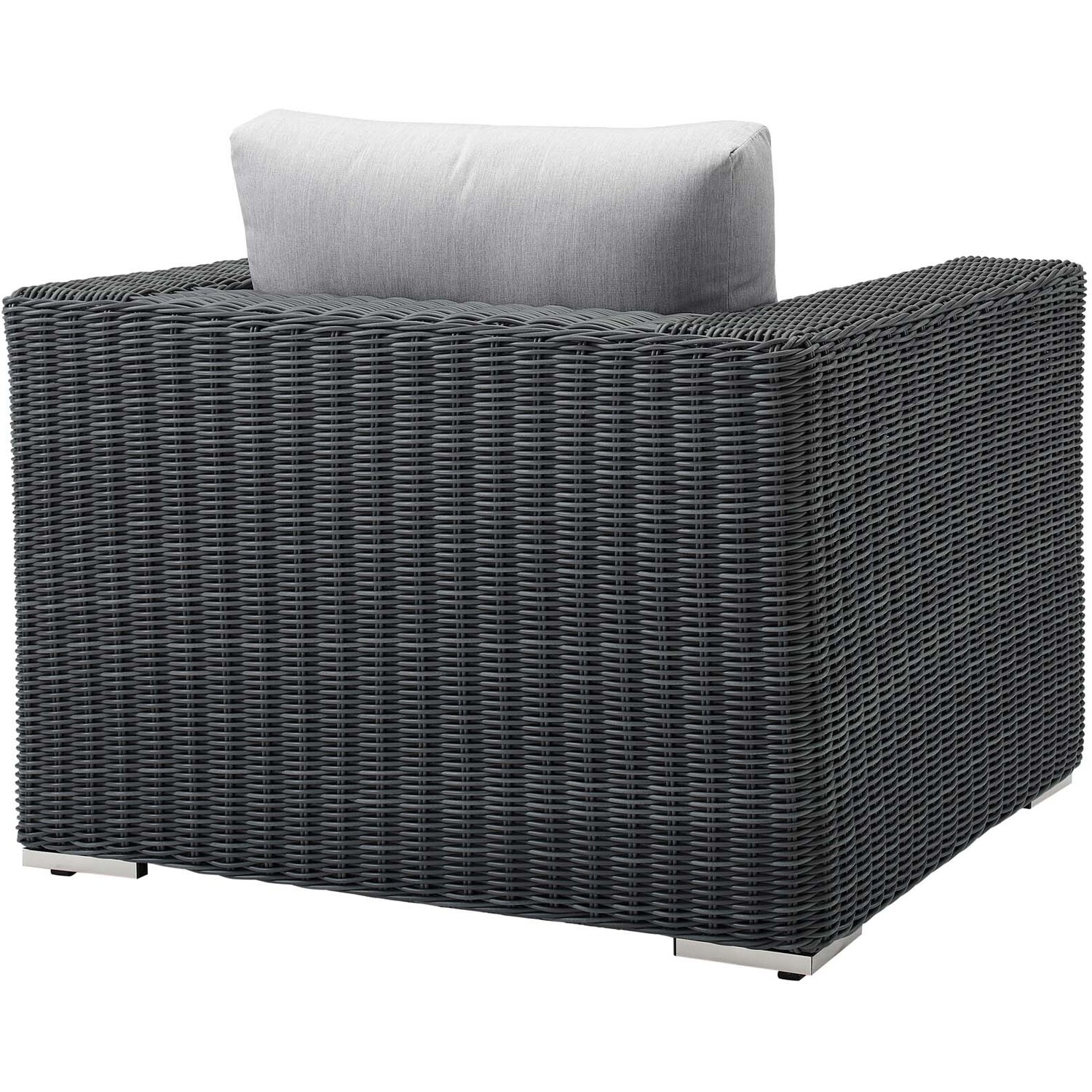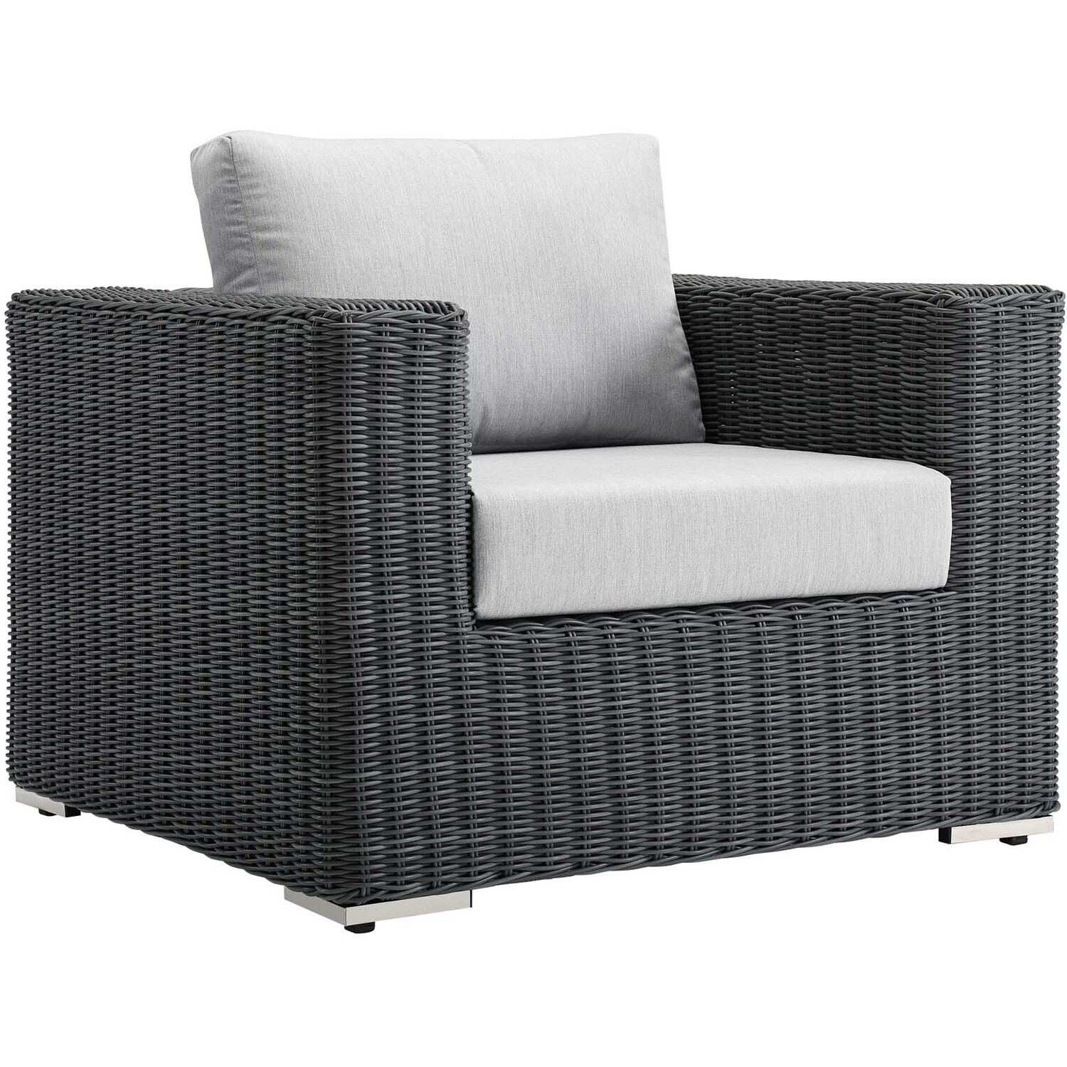 Experience the outdoors with exceptional comfort and quality. Summon Outdoor Patio Arm Chair offers an exquisite two-tone synthetic rattan weave, plush all-weather cushions with industry-leading Sunbrella® fabric, UV protection, and a sturdy powder-coated aluminum frame. Featuring an elegant modern look, Summon Patio Arm Chair is part of an avant-garde outdoor sectional series well-equipped for enhancing patio, backyard, or poolside gatherings. This installment of the series is an Outdoor Patio Arm Chair.Long Lasting Sunbrella® Fabric