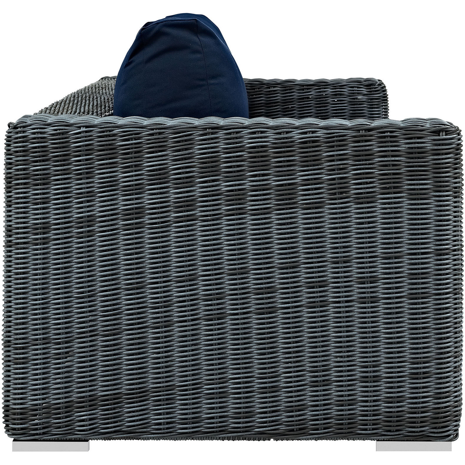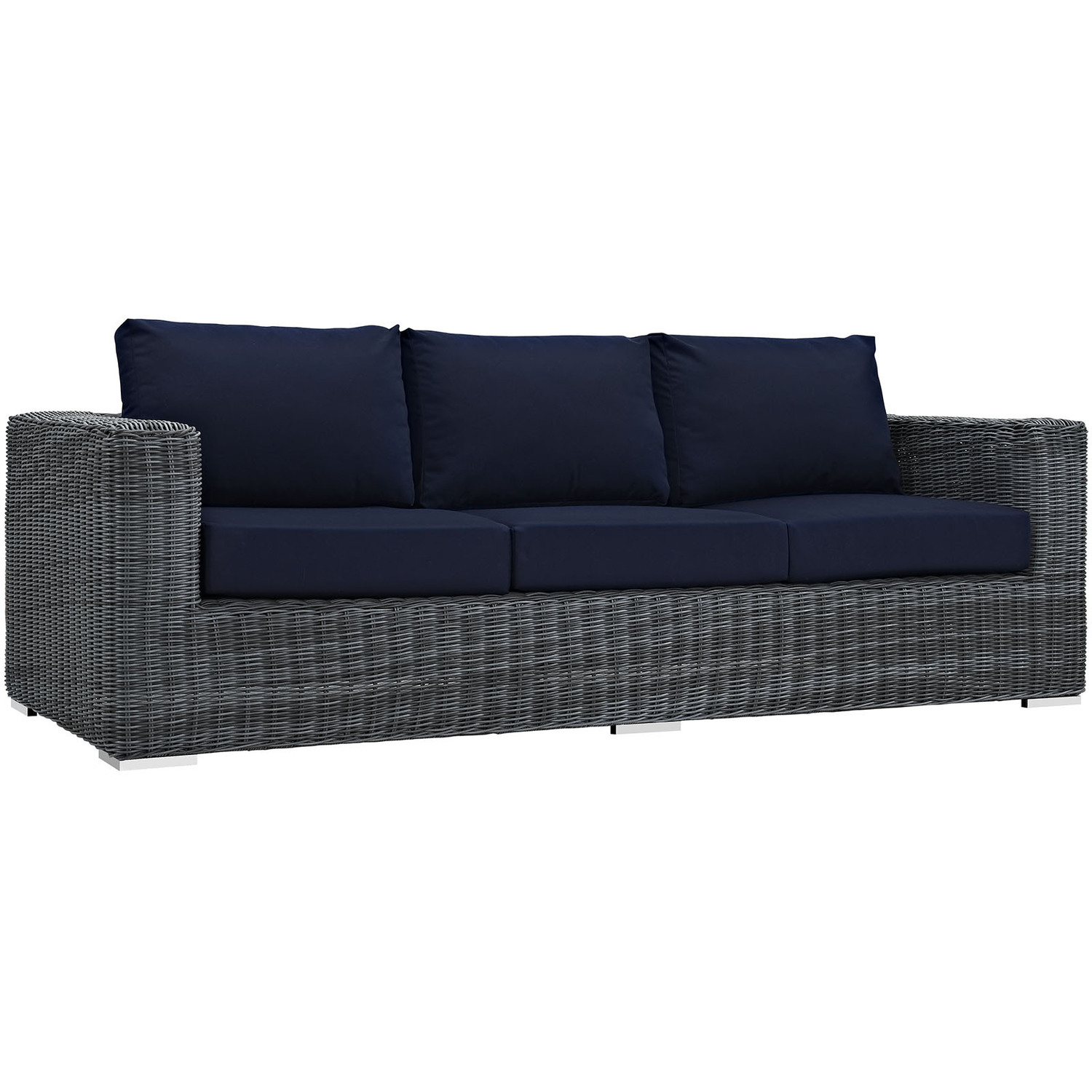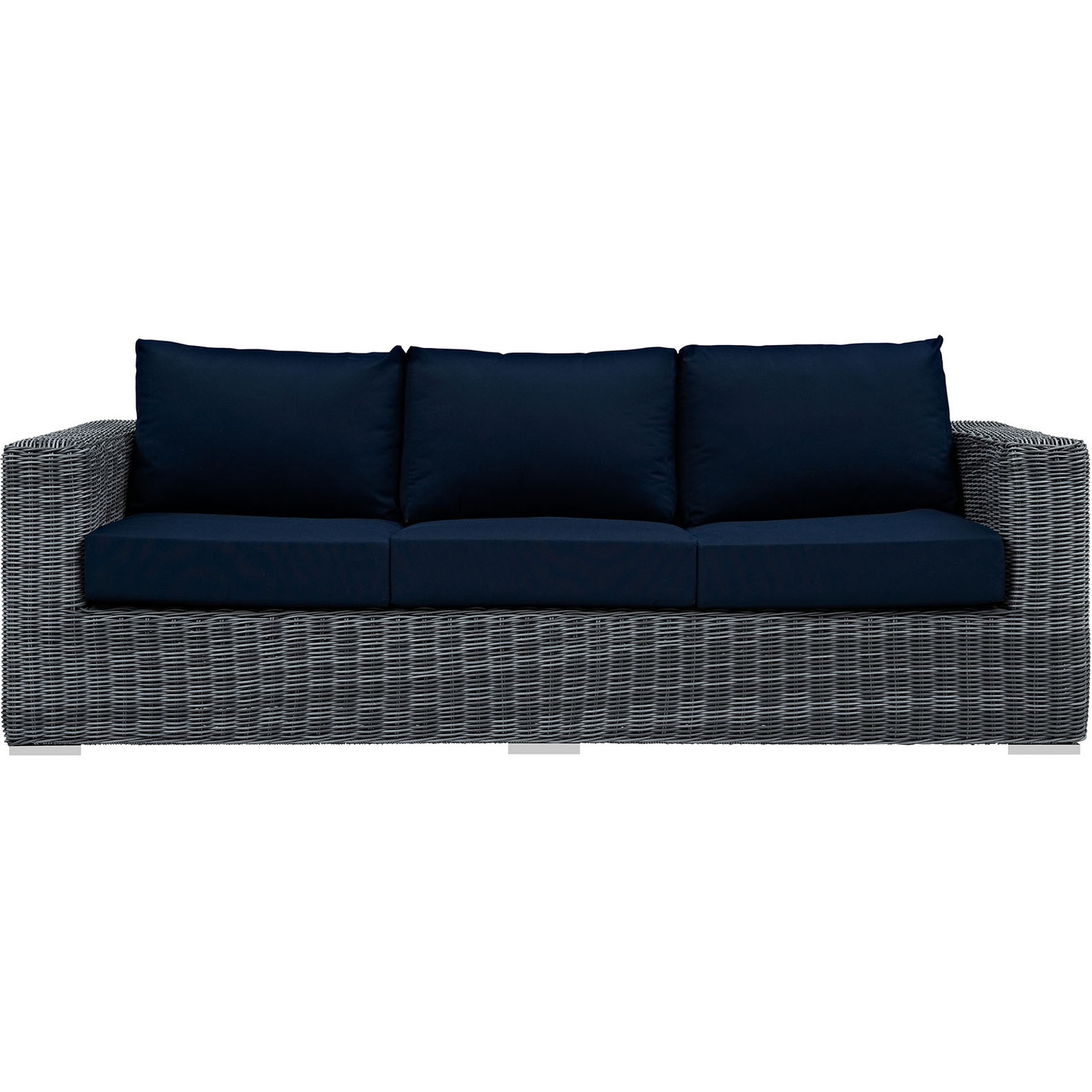 Experience the outdoors with exceptional comfort and quality. Summon Outdoor Patio Sofa offers an exquisite two-tone synthetic rattan weave, plush all-weather cushions with industry-leading Sunbrella® fabric, UV protection, and a sturdy powder-coated aluminum frame. Featuring an elegant modern look, Summon Patio Sofa is part of an avant-garde outdoor sectional series well-equipped for enhancing patio, backyard, or poolside gatherings. This installment of the series is an Outdoor Patio Sofa.Long Lasting Sunbrella® Fabric