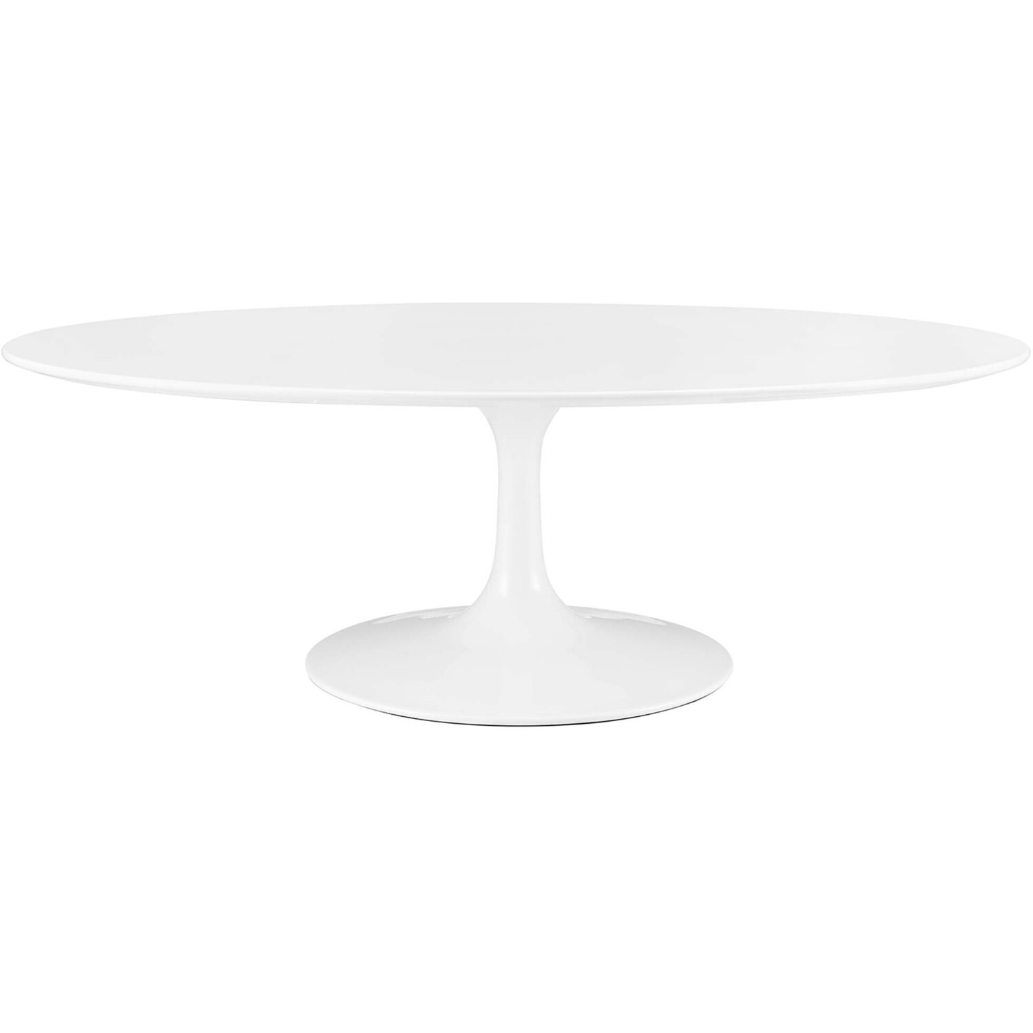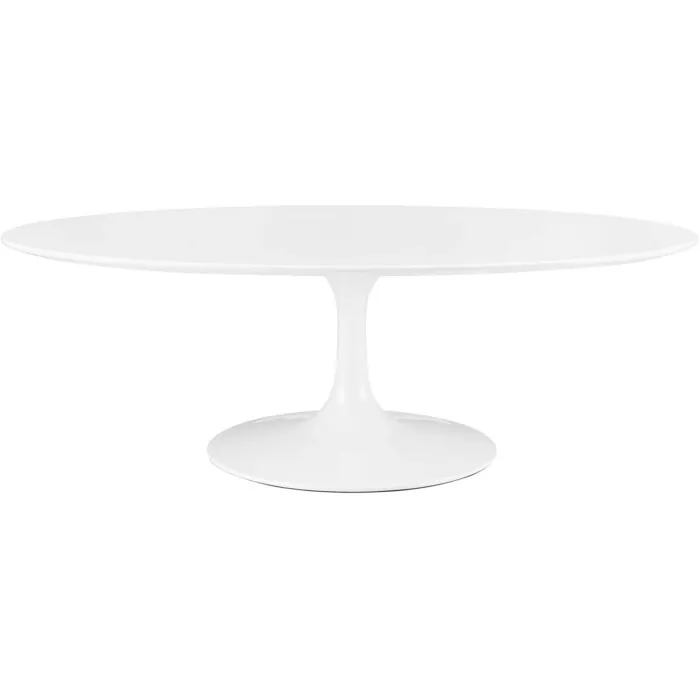 Let modern inspiration flow while gathered around the Lippa 48" Oval Coffee Table. Perfect for hosting a morning cup of coffee or entertaining family and friends, this pedestal table features a spacious surface. Its oval tabletop is crafted with durable MDF with a high gloss finish and beveled edge for a contemporary yet timeless design. Embodying an iconic mid-century silhouette, this pedestal coffee table floats on a sleek tapered metal pedestal base with a chip-resistant lacquered finish. Includes non-marking felt pad to protect flooring. Assembly required.Modern Coffee Table
