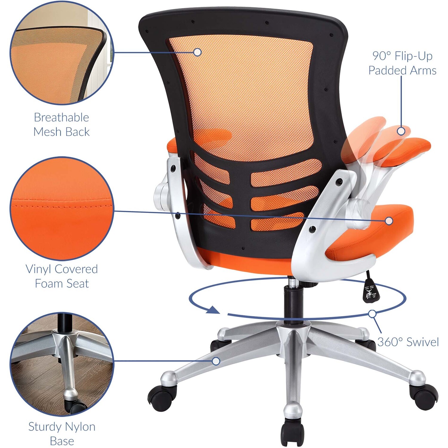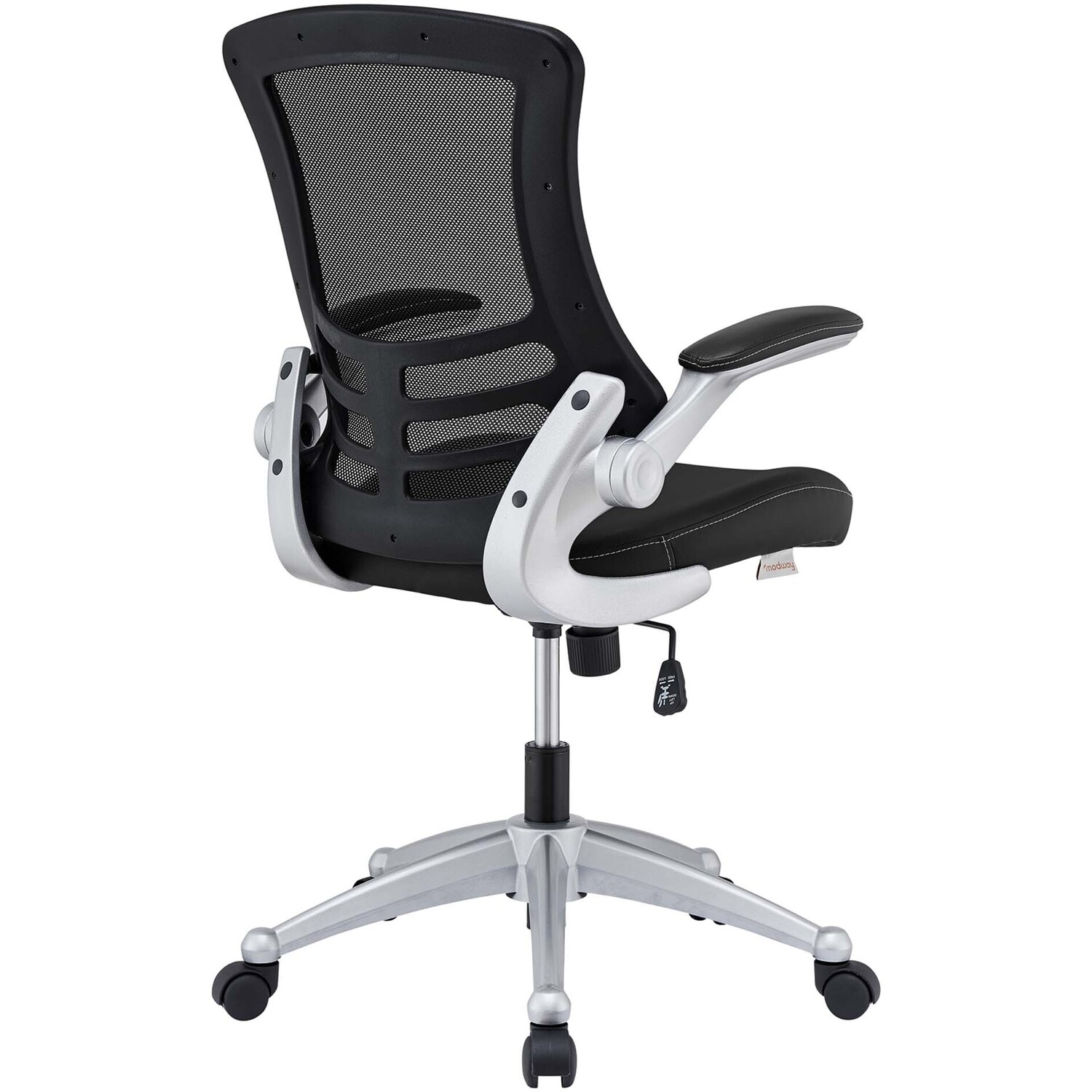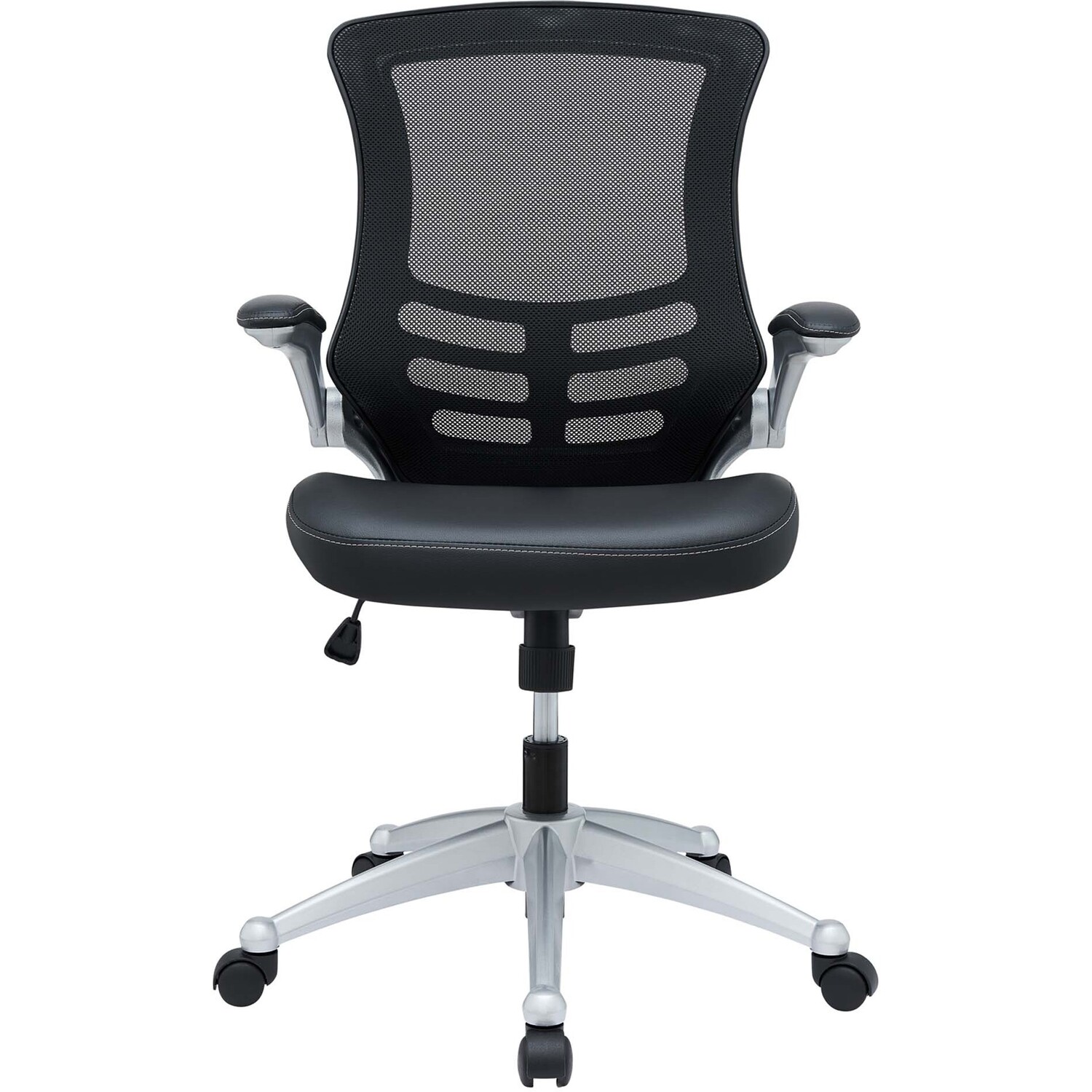 Taking you where you need when you need it most. The Attainment Office Chair is a form-fitting ergonomic chair made from the most revolutionary advances in seating today. The breathable mesh back is curved to assist back and shoulder posture, while the lower frame provides exemplary lumbar support. With flip-up arms and a leatherette padded waterfall seat, enjoy your work from a place of comprehensive comfort.Breathable mesh back