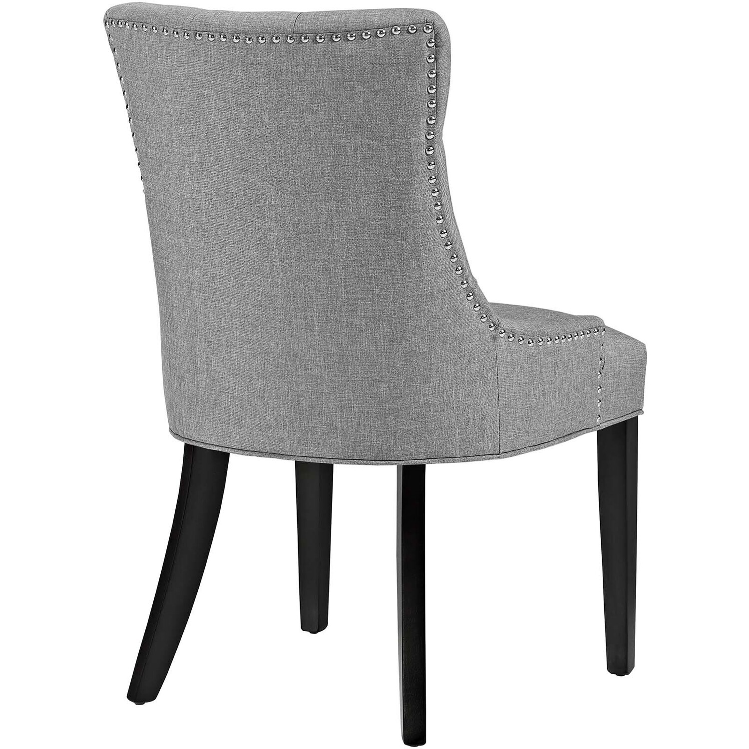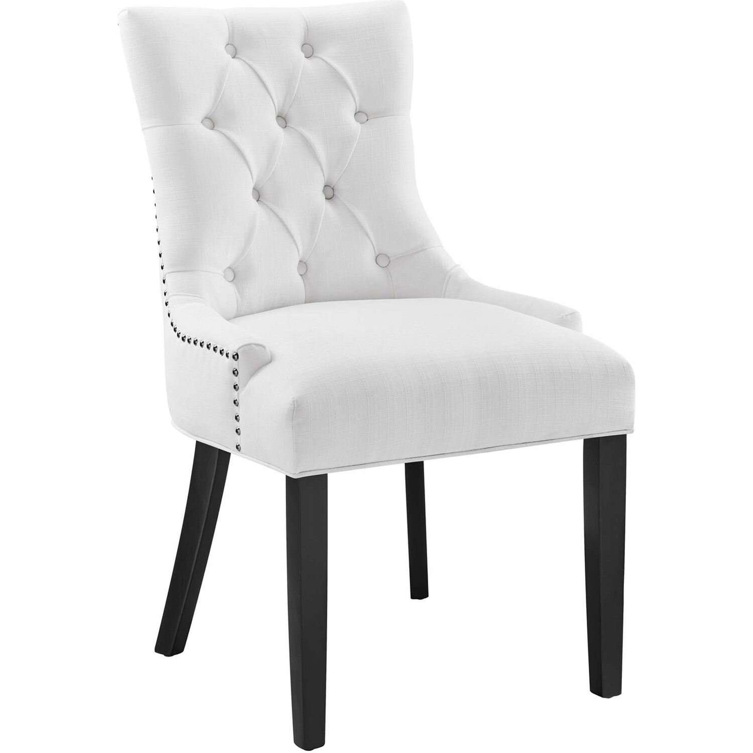 Transport your decor to a simpler time with the Regent Dining Side Chair. Fashioned with a chic and elegant look, this dining chair features finely tufted buttons, studded nailhead trim, and a regal seat generously padded in foam and upholstered in polyester fabric. This comfortable chair comes with non-marking foot caps, tapered wood legs, and works well in both modern and traditional dining rooms.Tufted Dining Chair
